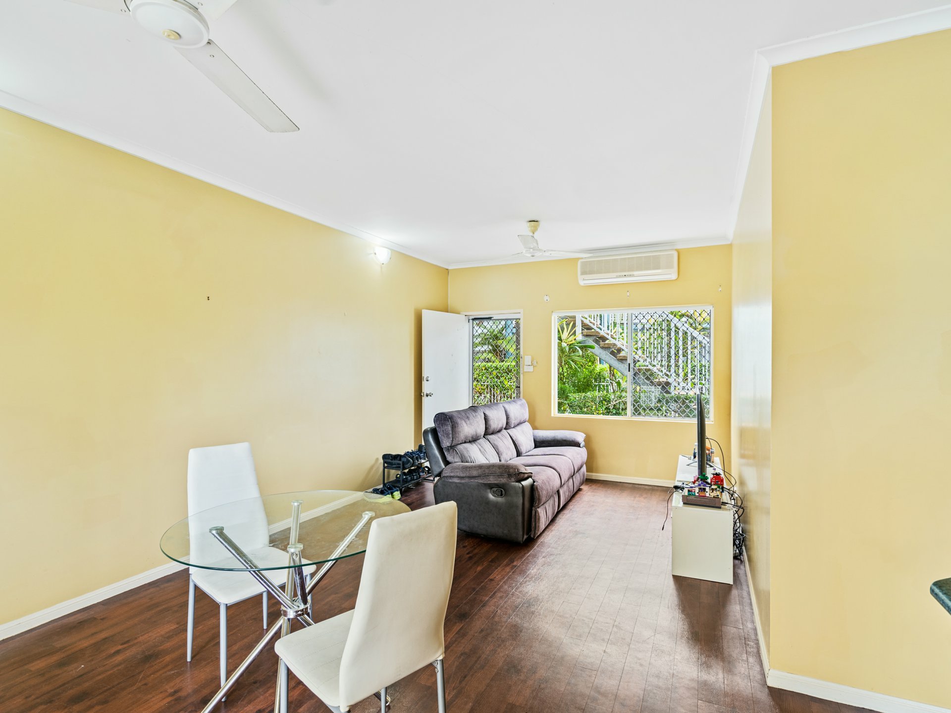 - Split system air conditioning and security screens