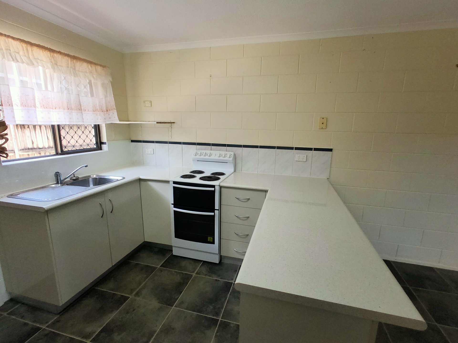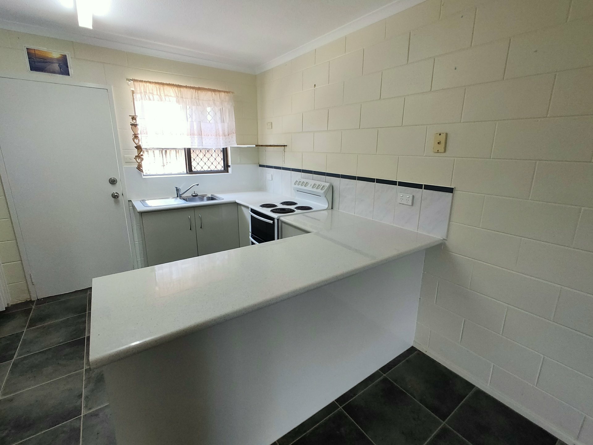 - Tiled living area