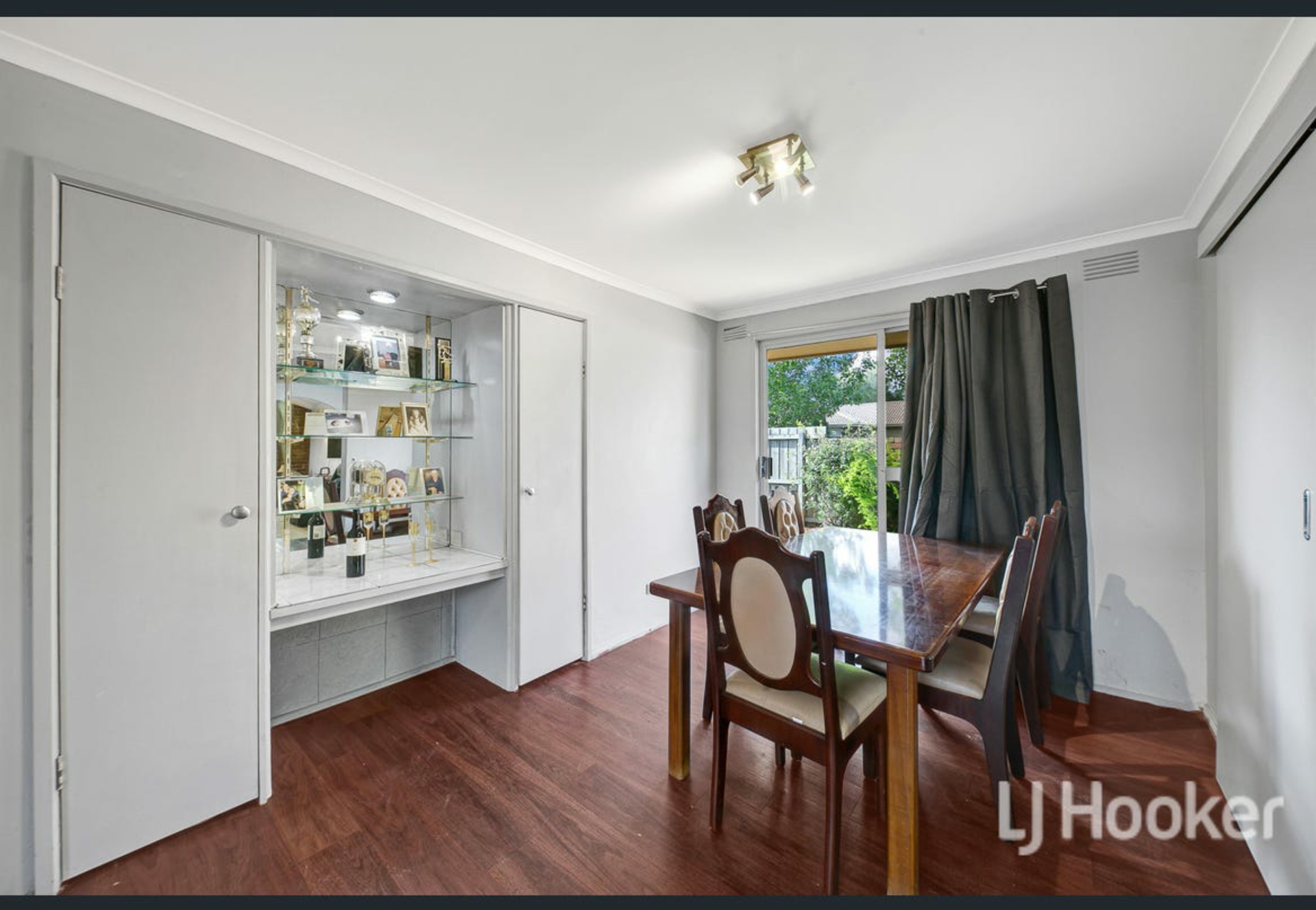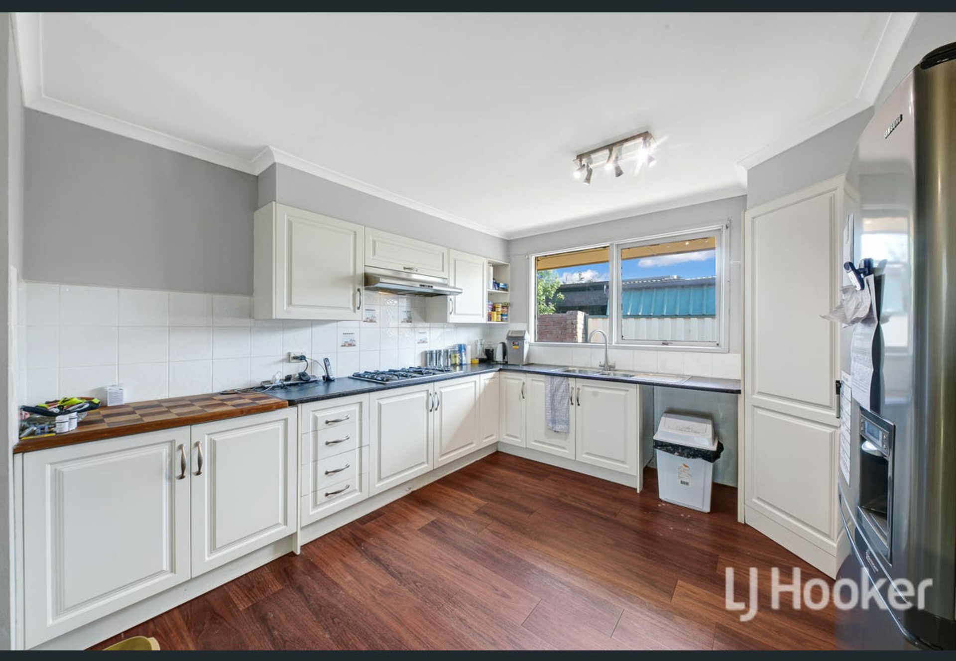 The bright and functional kitchen overlooks the backyard and connects seamlessly to the dining area, creating a practical layout for everyday living and entertaining.
