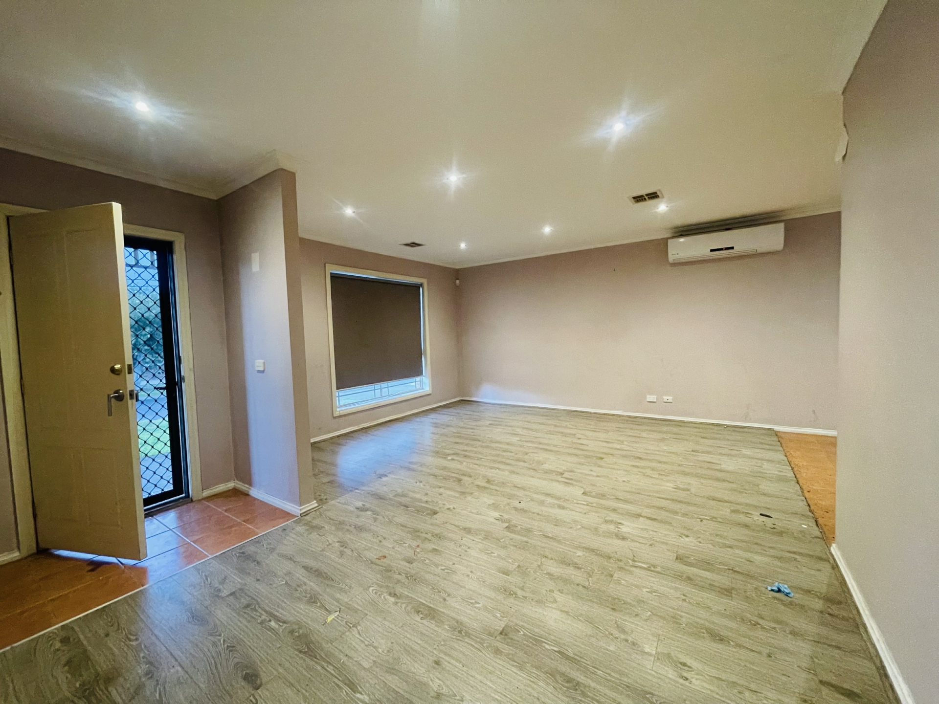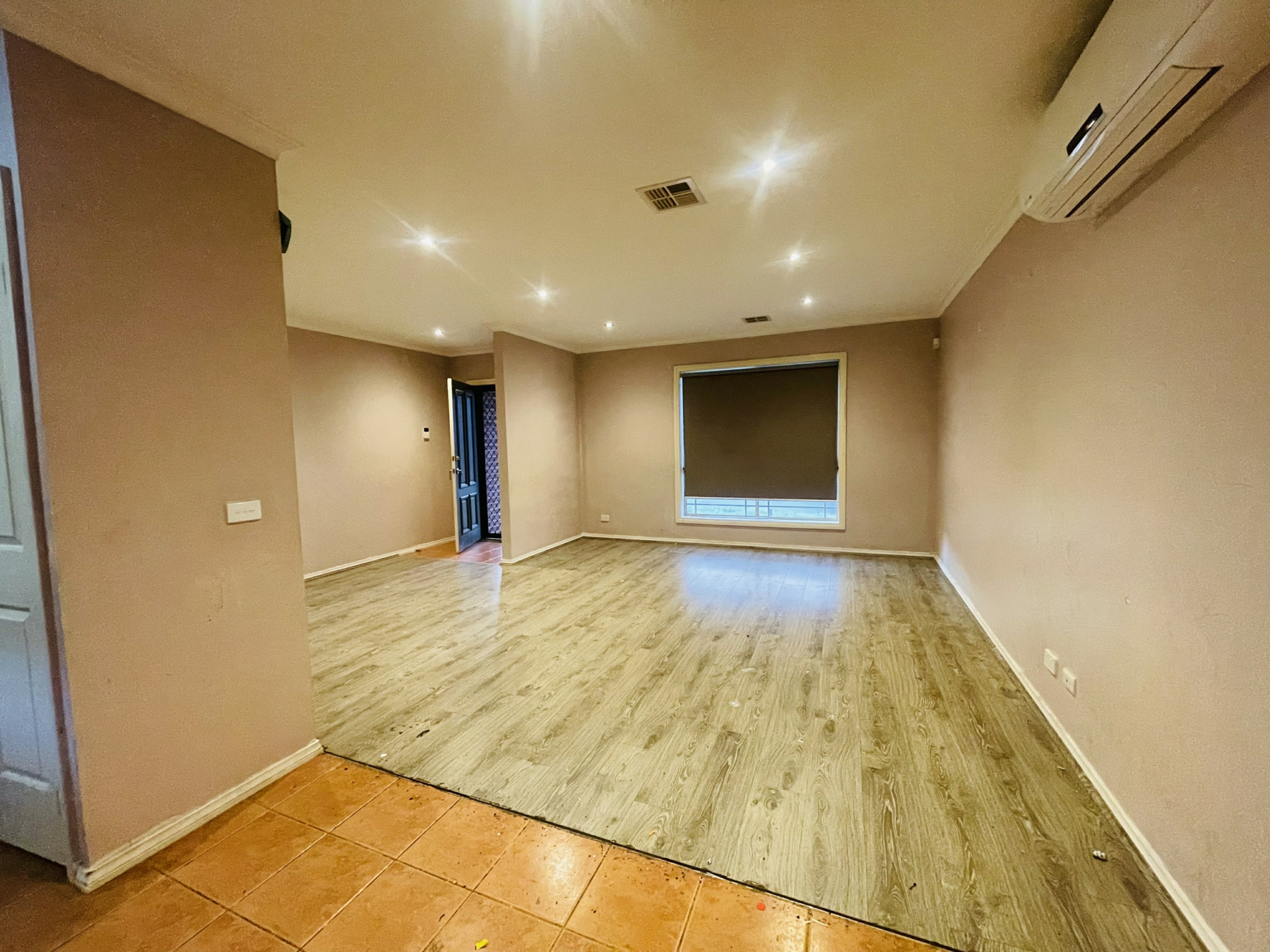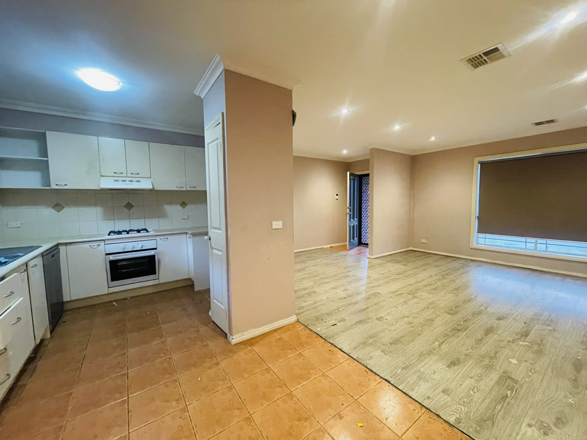 - Large open plan kitchen, meals, and living area