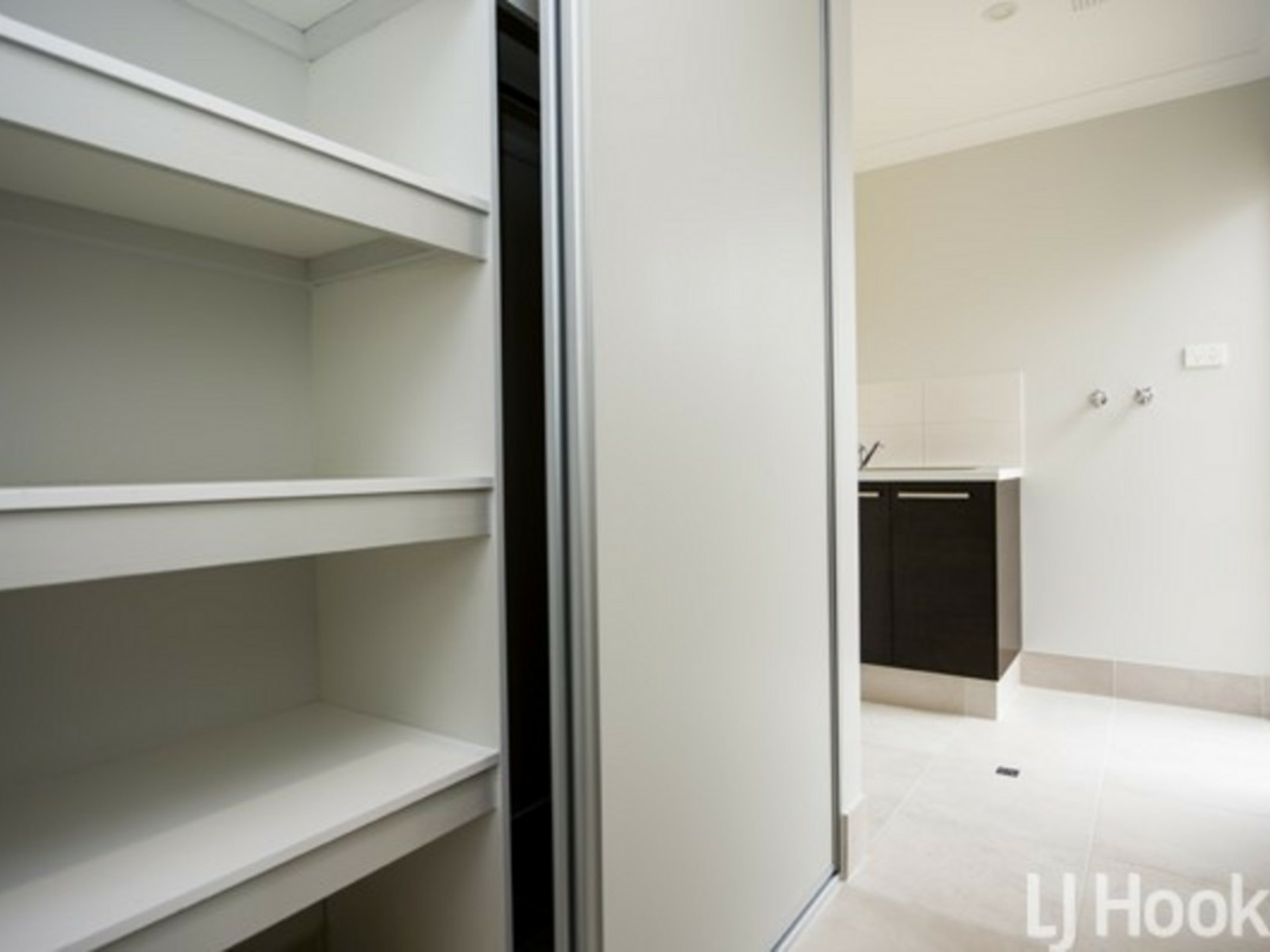 - Separate Laundry with shelving and broom storage