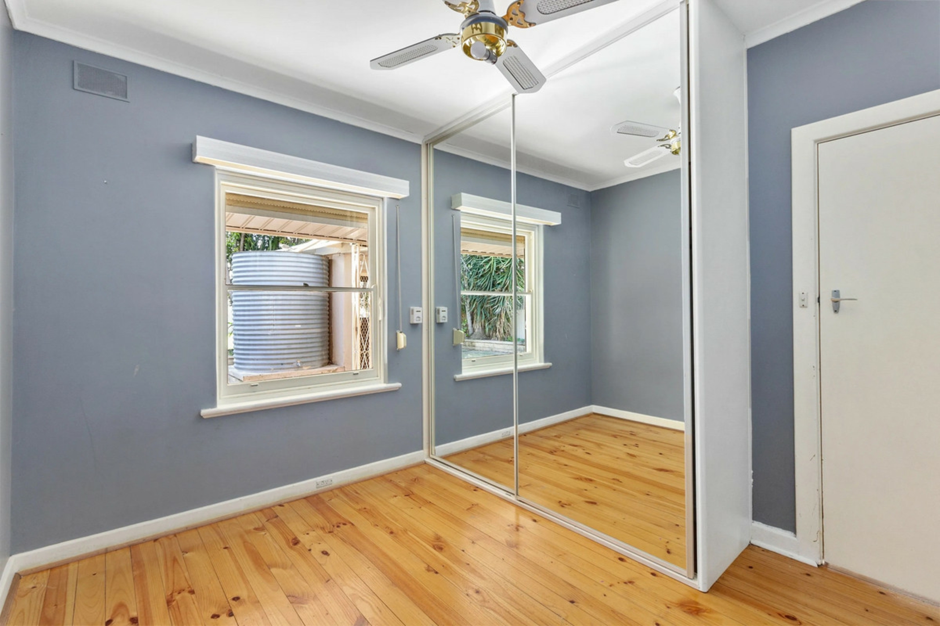 - Polished timber floorboards