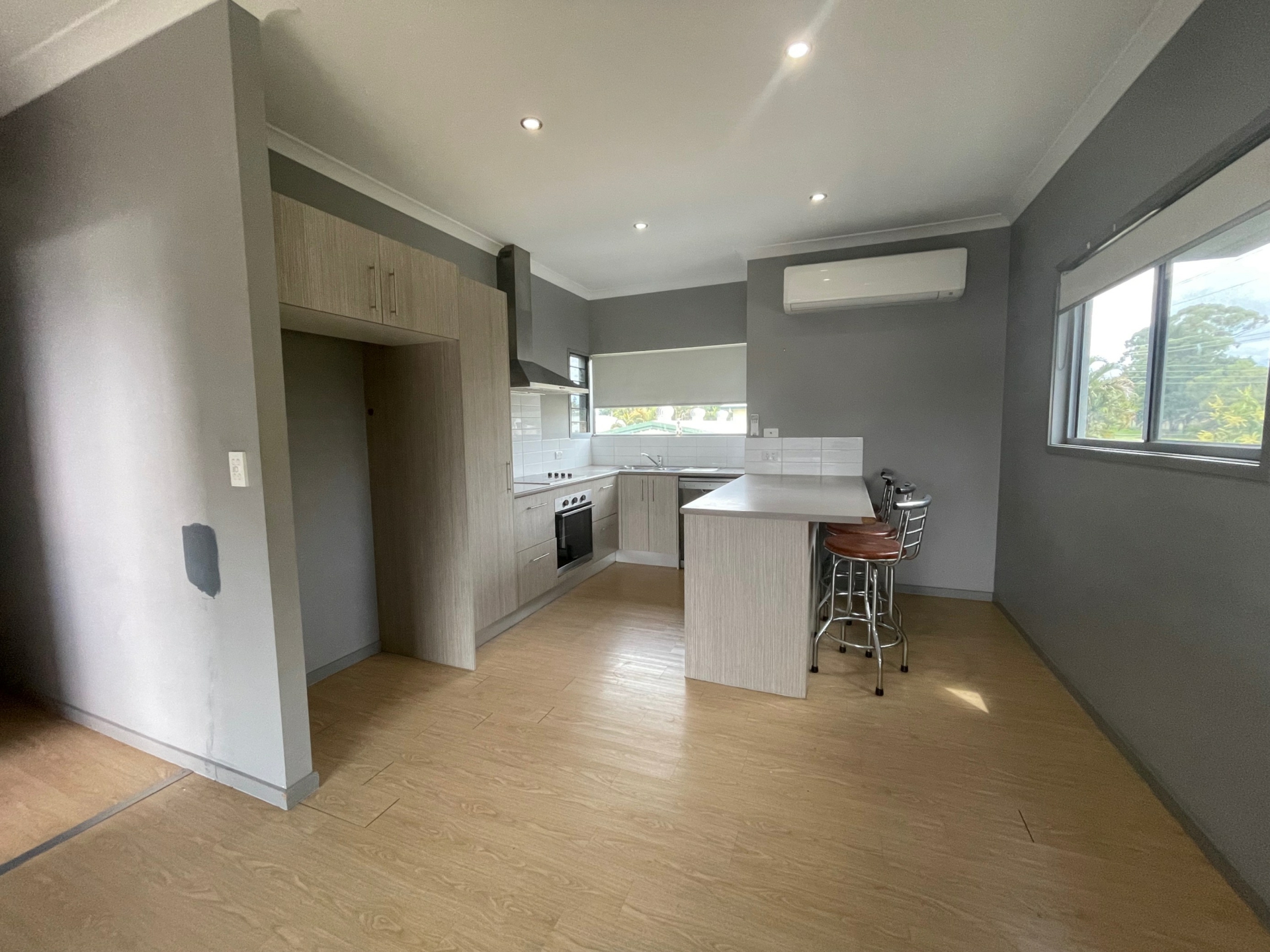 The gallery kitchen features stainless steel appliances and overlooks the spacious living area. This home is fully air conditioned and located on a quiet street.