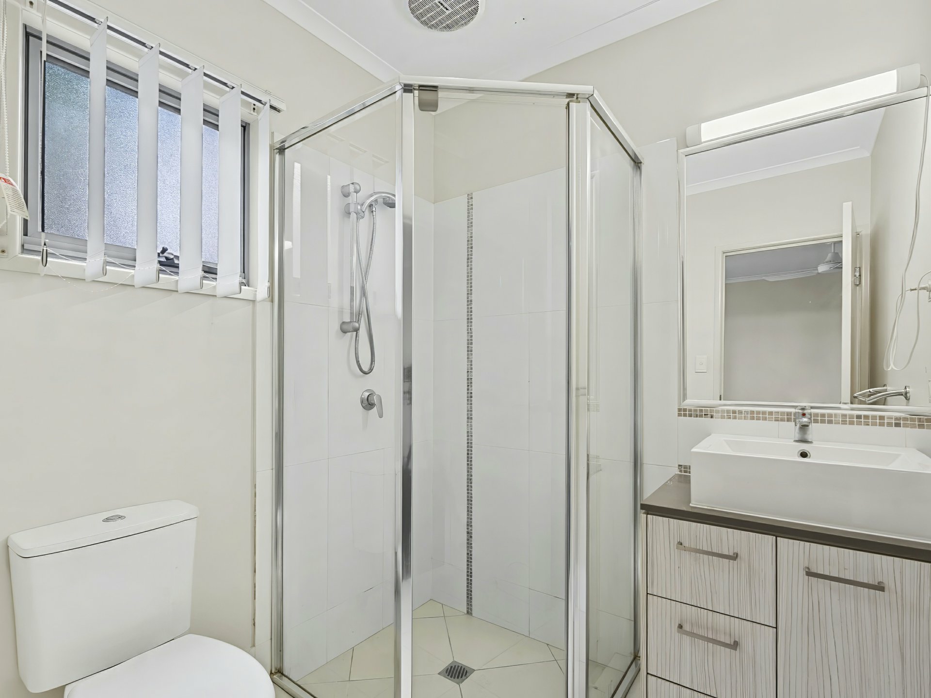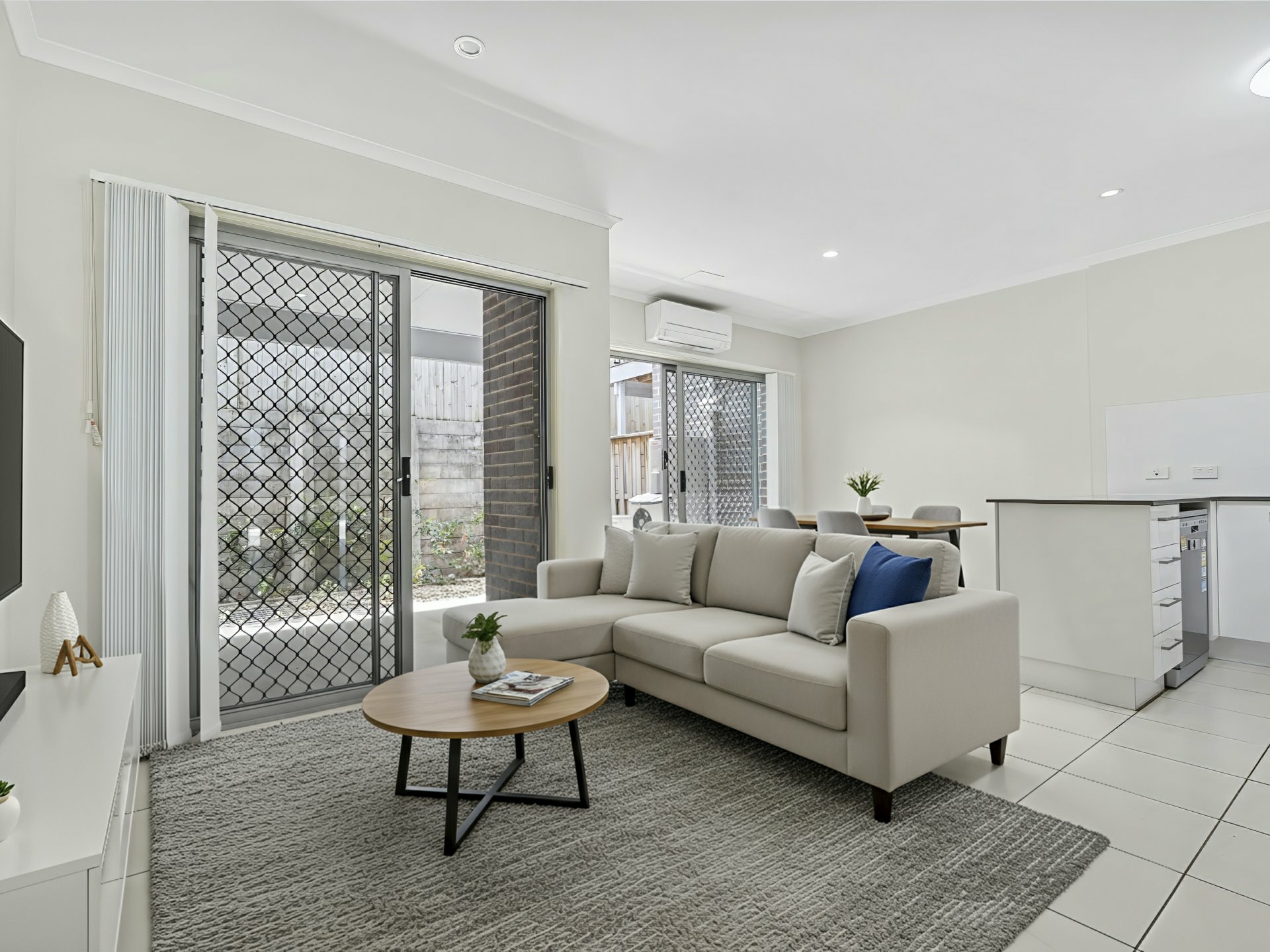 Inside, you’ll find a bright and airy open-plan living and dining area, complete with tiled flooring and air conditioning for year-round comfort. This space flows effortlessly out to a private courtyard, creating the perfect spot to unwind or entertain guests.