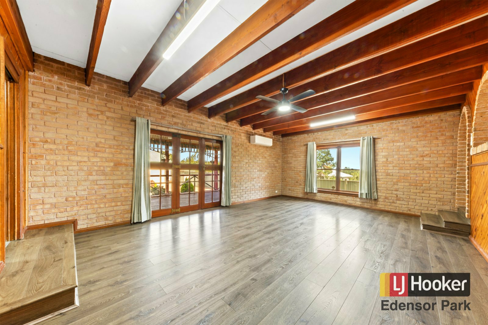 Large split system AC fitted, French doors open up to very large covered deck area which extends your living space.