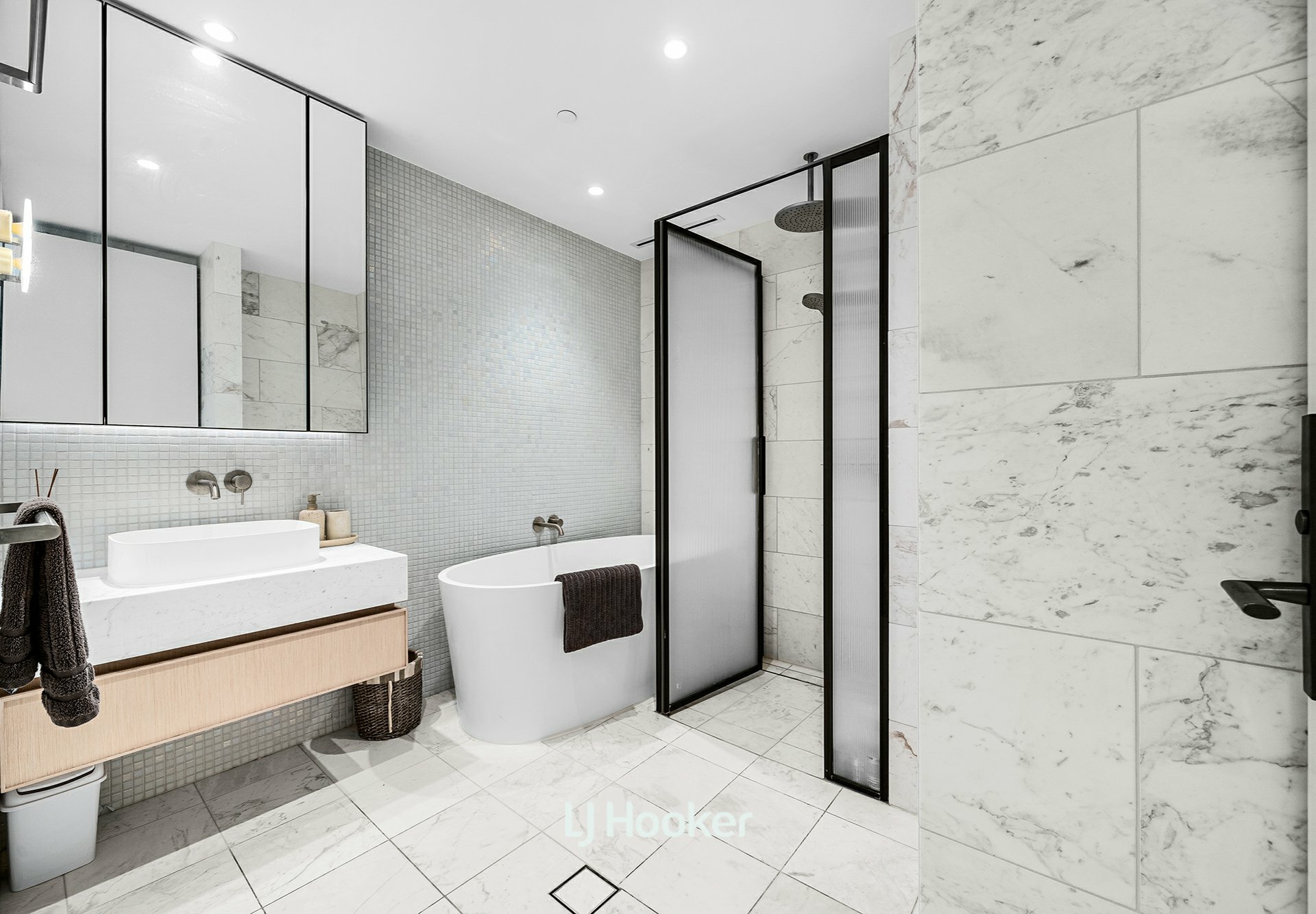 - Exquisite marble finishes in both bathrooms and the laundry