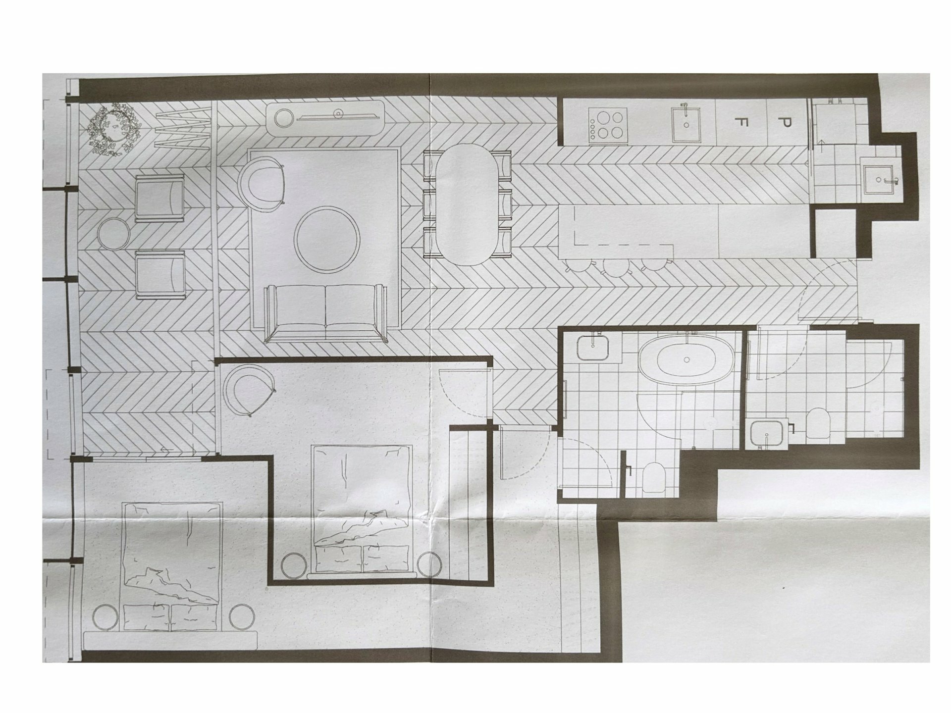 - French Oak Chevron flooring, brushed Nickel Parisi tapware
