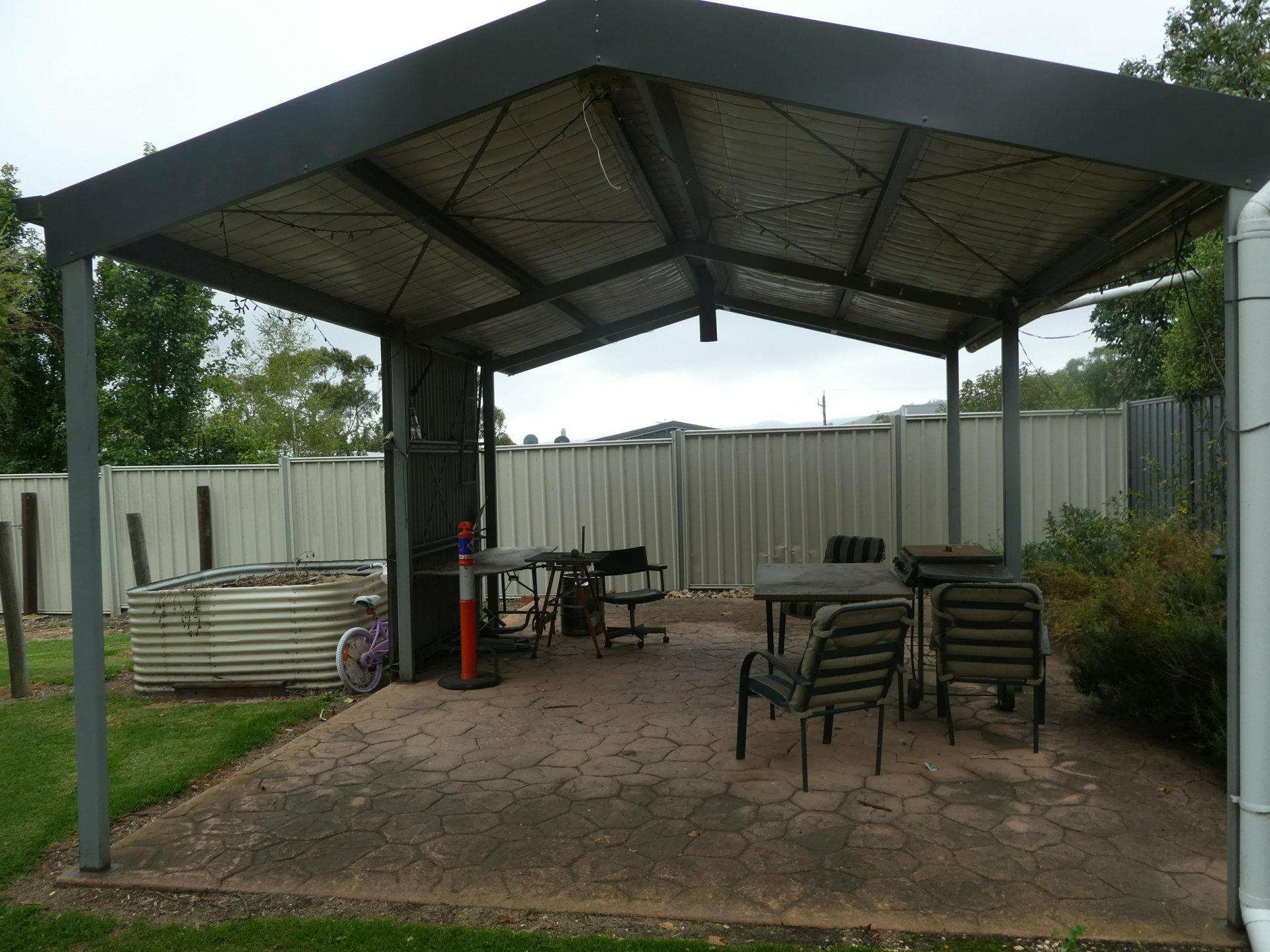 Large enclosed yard with undercover entertaining area.
