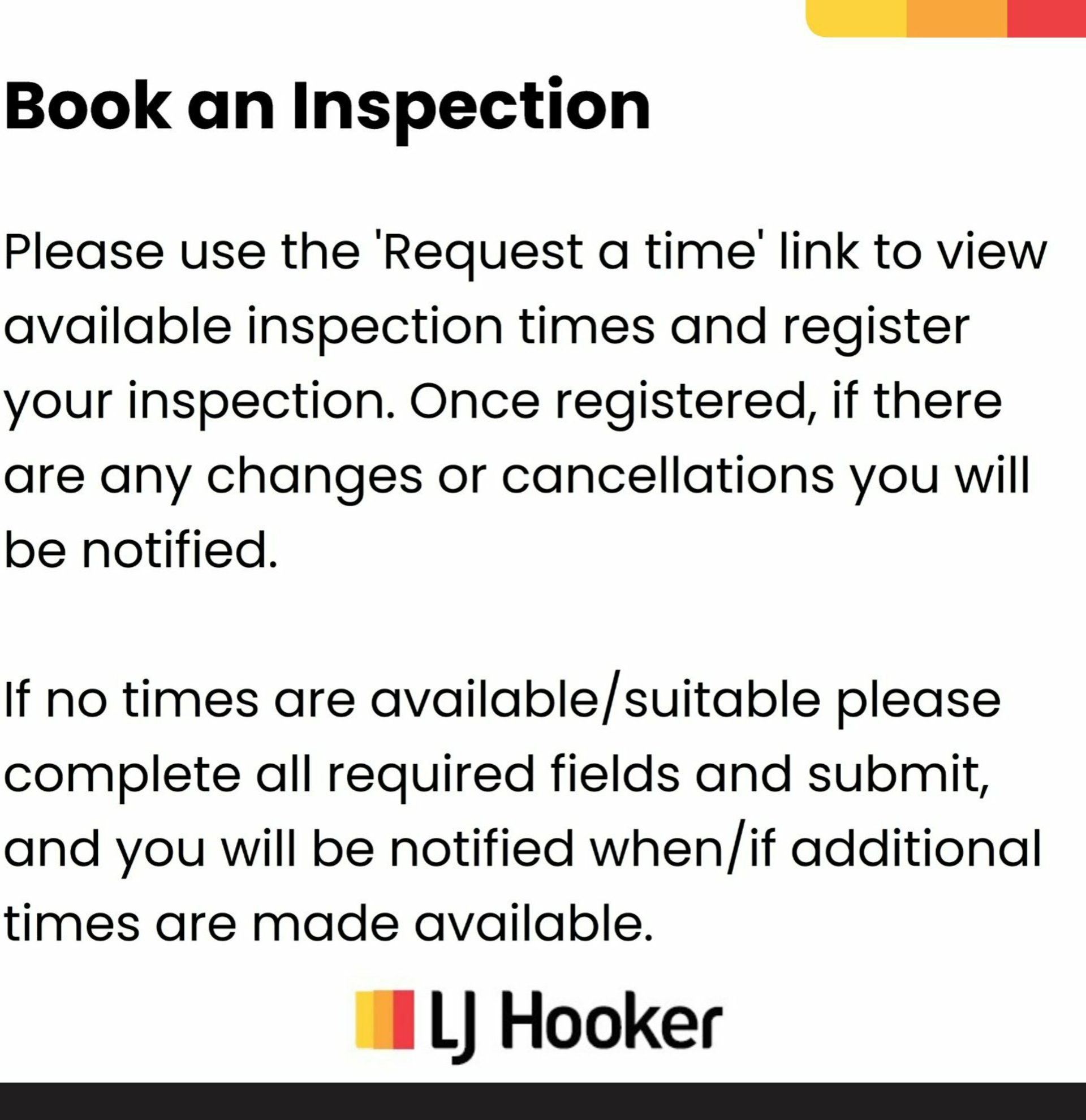 Registration is required to inspect the property. Inspection times may change or be cancelled at short notice; however, registered attendees will be notified via SMS or email. Photo ID is required at all inspections. Photography and video recording are strictly prohibited.