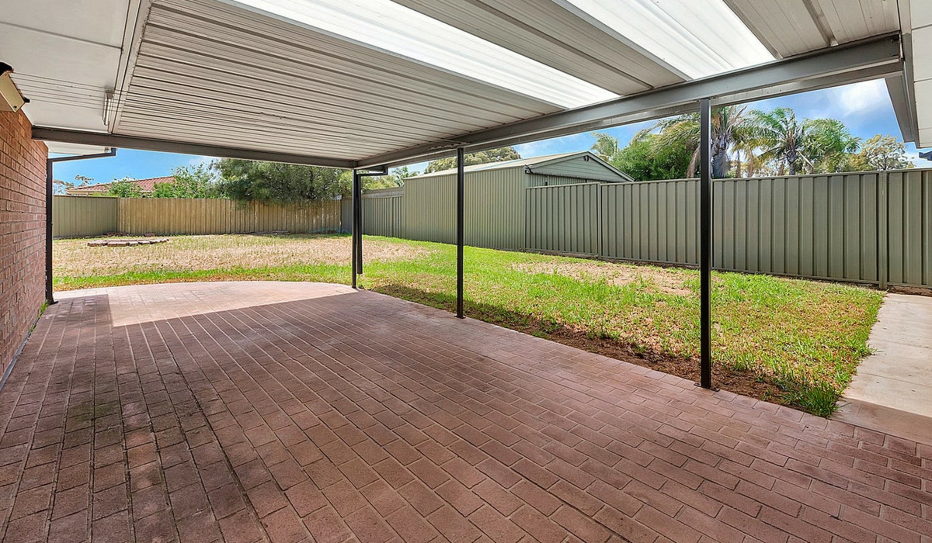 Step outside to a paved undercover veranda, overlooking a sprawling backyard. It is a blank canvas for kids to run.