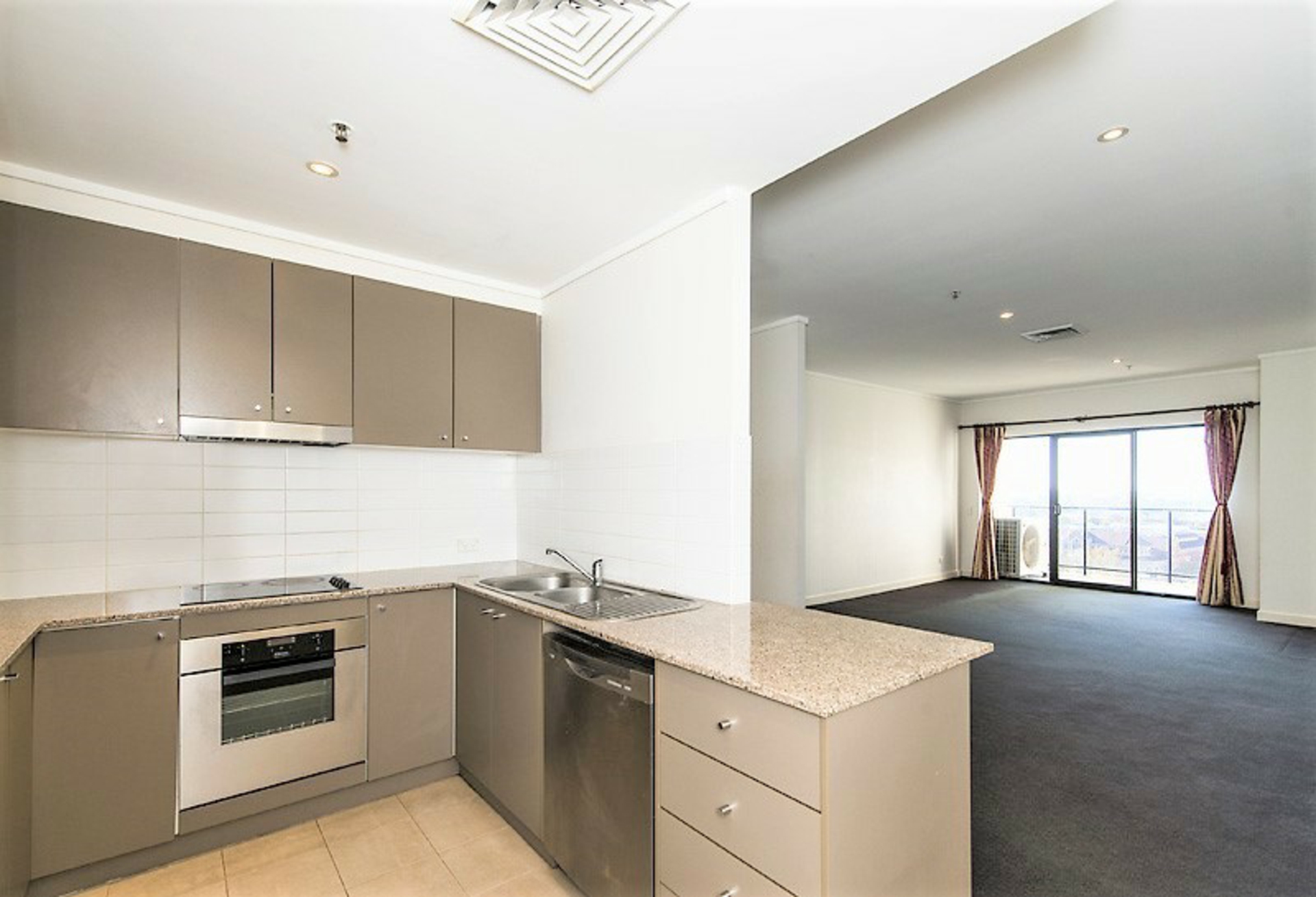 You will find the open plan kitchen, dining, and living areas bright and modern, with high ceilings, plush carpet, and neutral tones throughout. The full sized kitchen is well equipped, featuring stone benchtops, stainless steel appliances including a dishwasher plus plenty of storage. The air-conditioned living area opens onto your own private balcony which overlooks the city, perfect for enjoying your morning coffee.