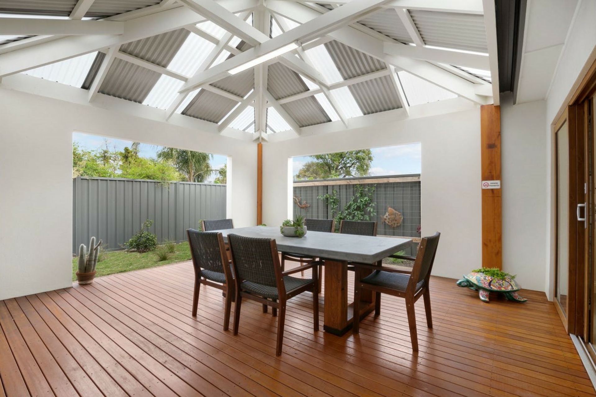 Externally there is high private fencing, a single garage, double glazed windows, gas storage hot water service, stunning designer Alfresco & decking area, low maintenance gardens front & rear, solar panels for energy efficiency & the double gated return driveway is perfect for those wanting to house a caravan, trailer, boat or extra vehicles.