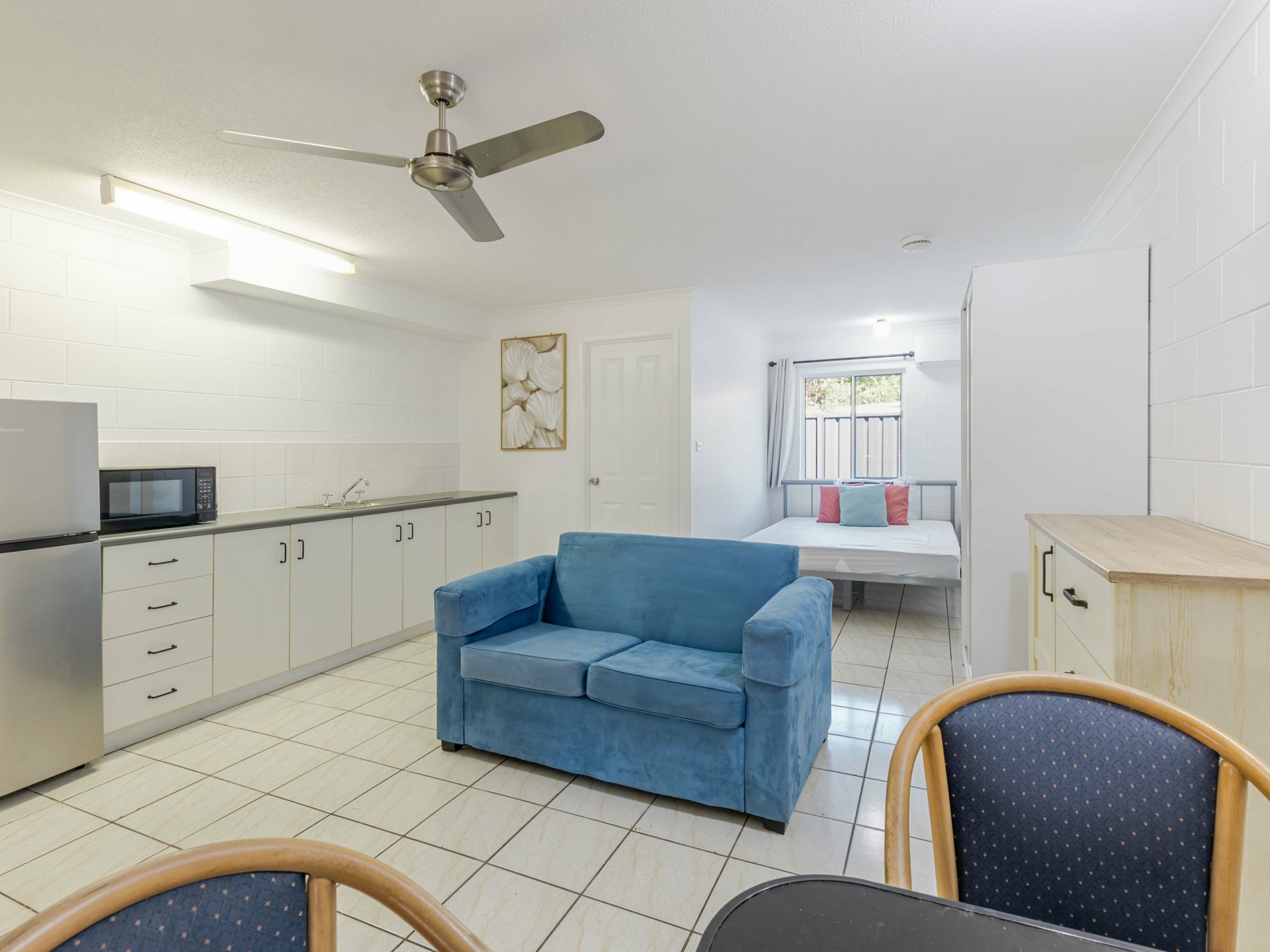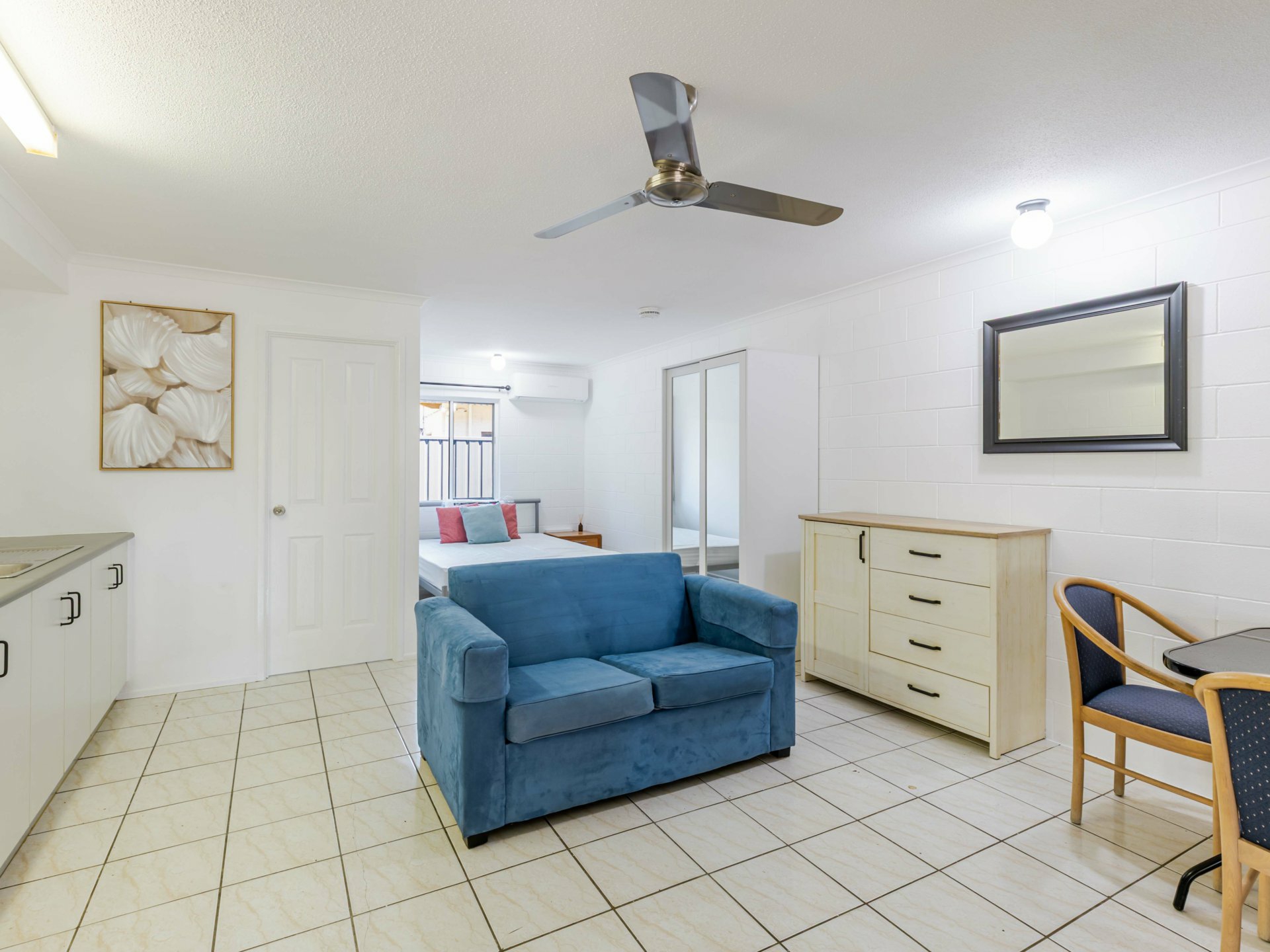 Motel style studio apartment with separate bathroom. Furnished and perfectly situated only minutes from the beach, public transport, restaurants and shops. Complex offers undercover parking, communal coin operated laundry and large, tropical plunge pool.