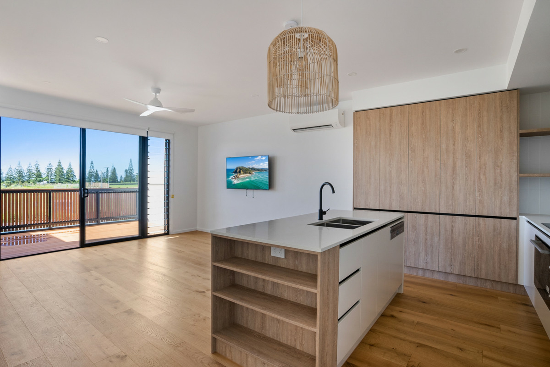 - Open plan upstairs living area leading to morning sun lit deck