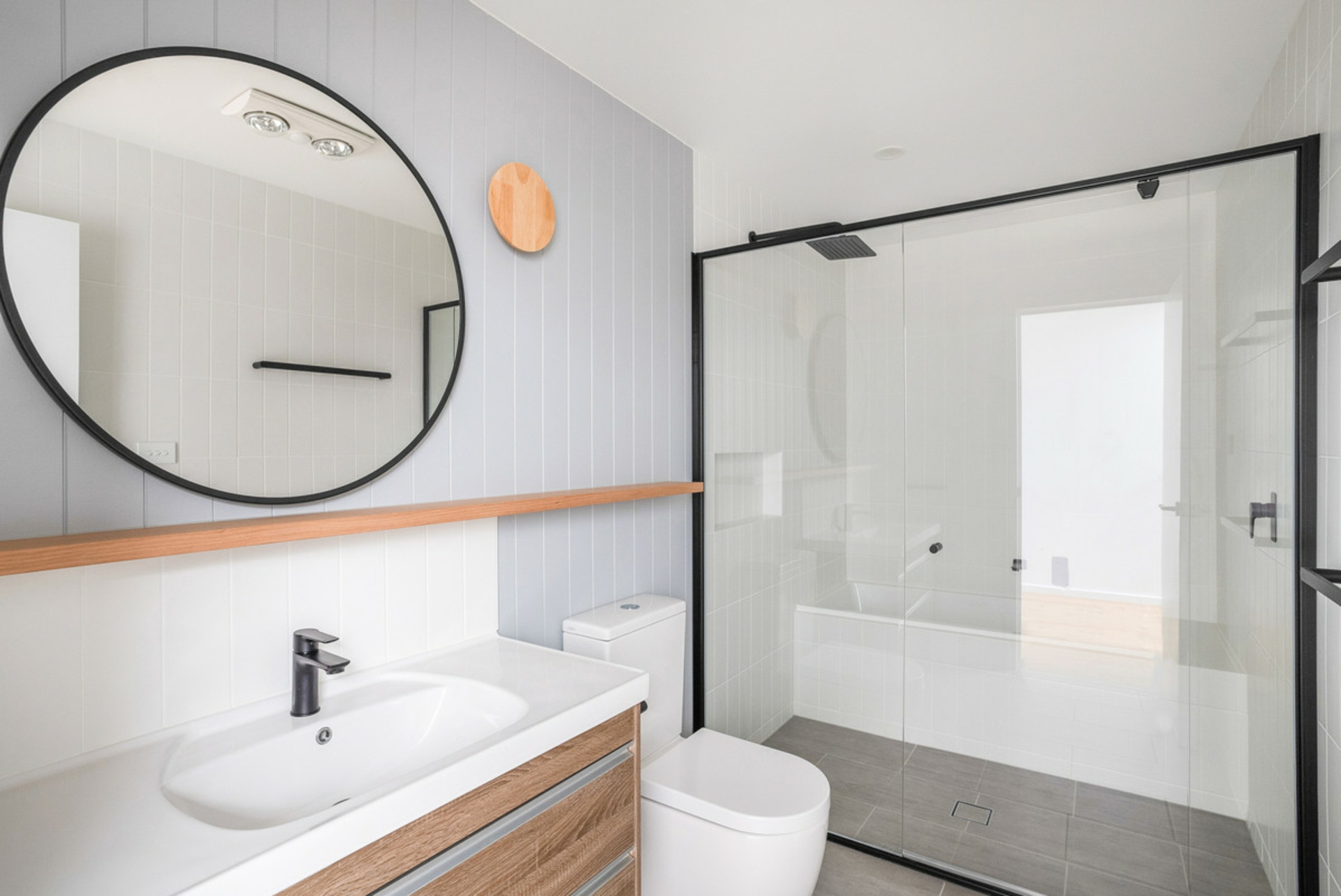 - Large modern bathroom with bath