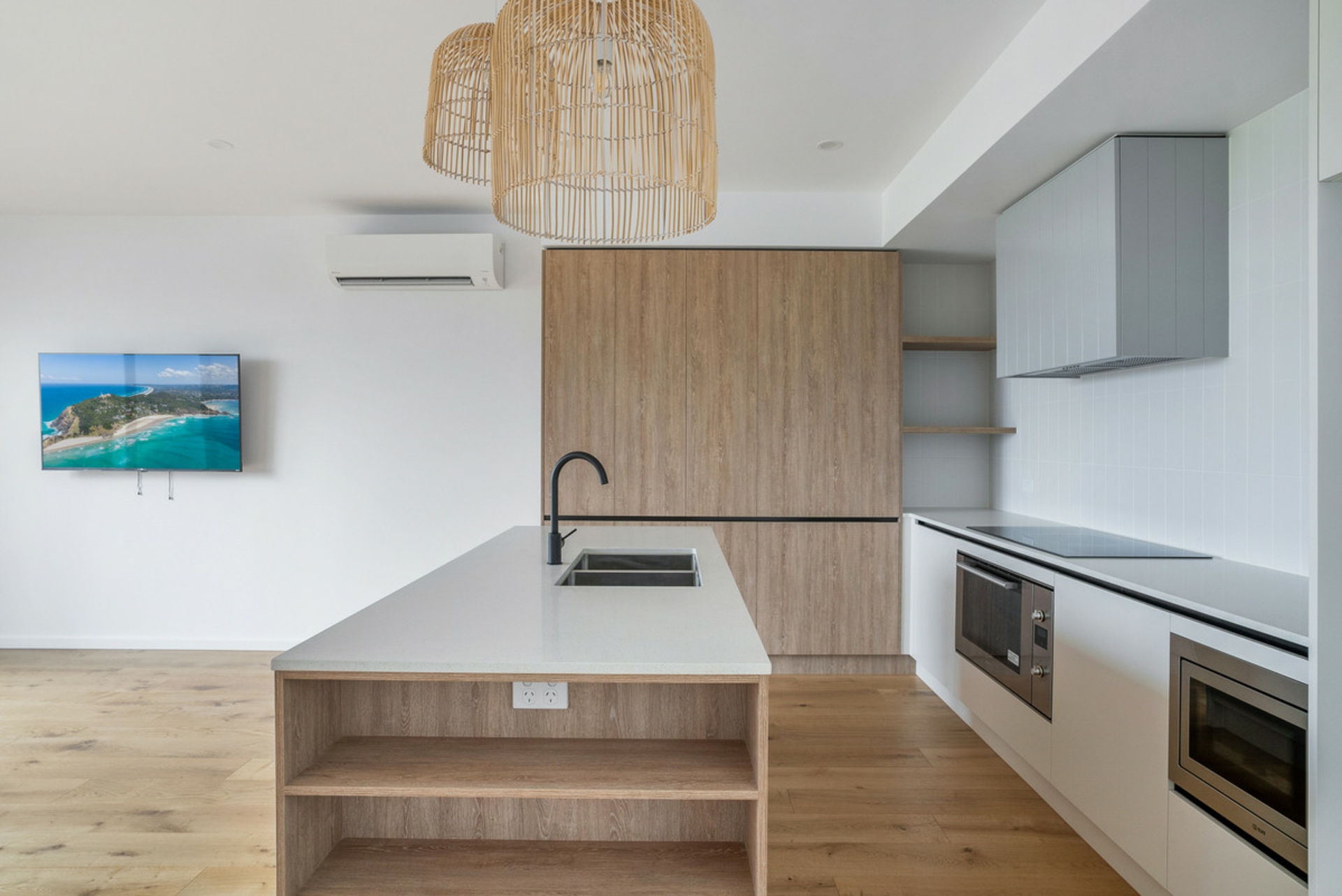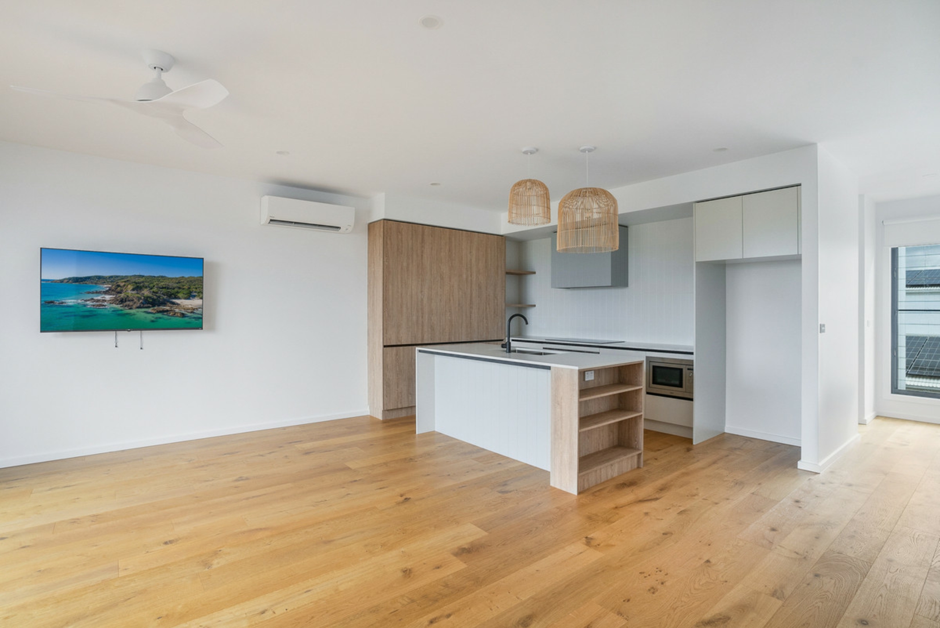 This brand new 3 bedroom townhouse is certain to delight. With expansive ocean views and safe under pass access to Sharpes beach, a short stroll from your door. A new purpose built playground and parkland directly across the road offer vast outdoor enjoyment options.
