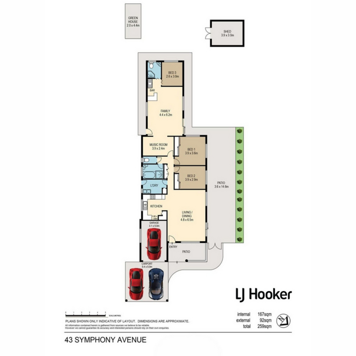 • Three-car accommodation including double carport
