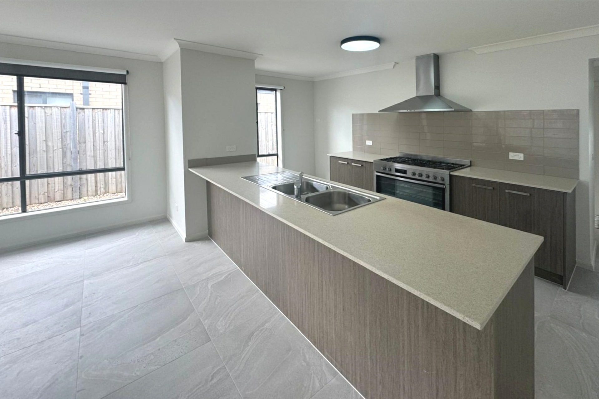 - A spacious and functional kitchen equipped with stainless steel appliances, including a 900mm freestanding stove/oven, a separate pantry, and ample bench space for meal preparation and casual dining.