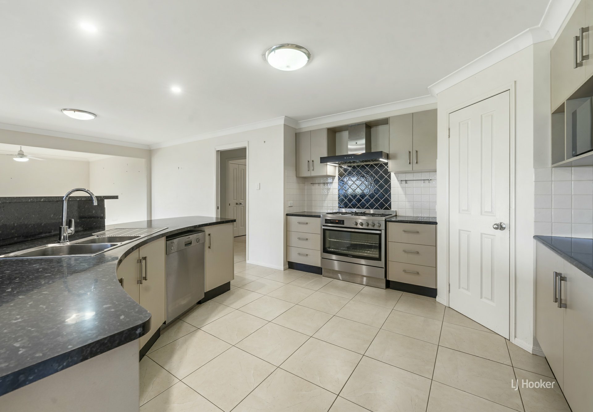 Large modern kitchen with gas cooktop, quality appliances & ample storage