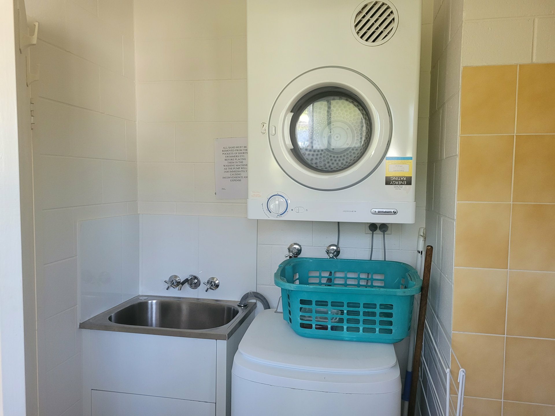 - Laundry located in bathroom including washing machine and dryer