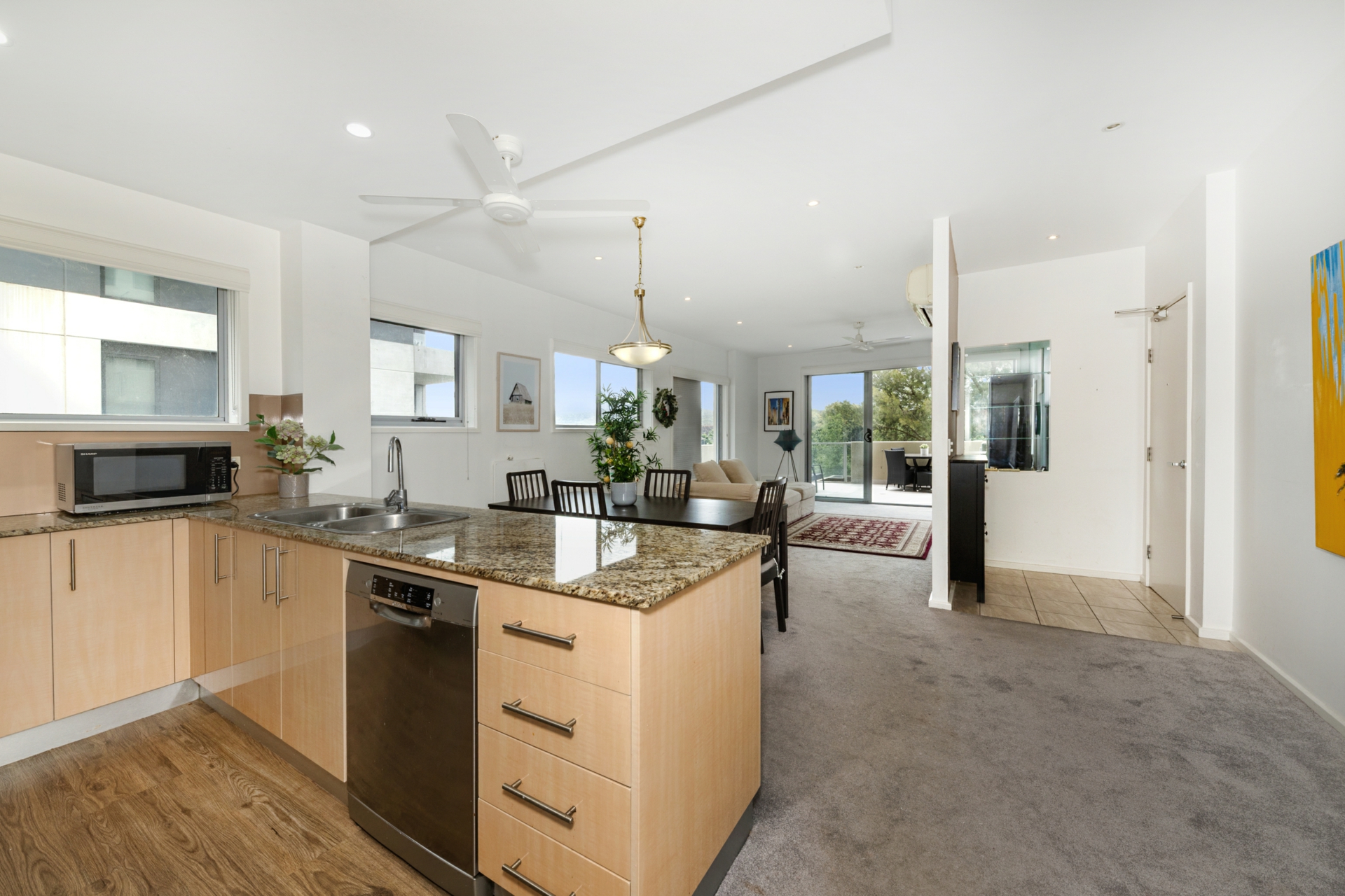 The apartment features a spacious open plan living and dining area that flows seamlessly onto a private balcony, ideal for relaxing or entertaining. The modern kitchen is well-equipped with quality appliances, ample storage, and sleek finishes. Offering a sought-after location and a low-maintenance lifestyle, this apartment presents an excellent opportunity to have a quality home in one of Canberra's most desirable suburbs.