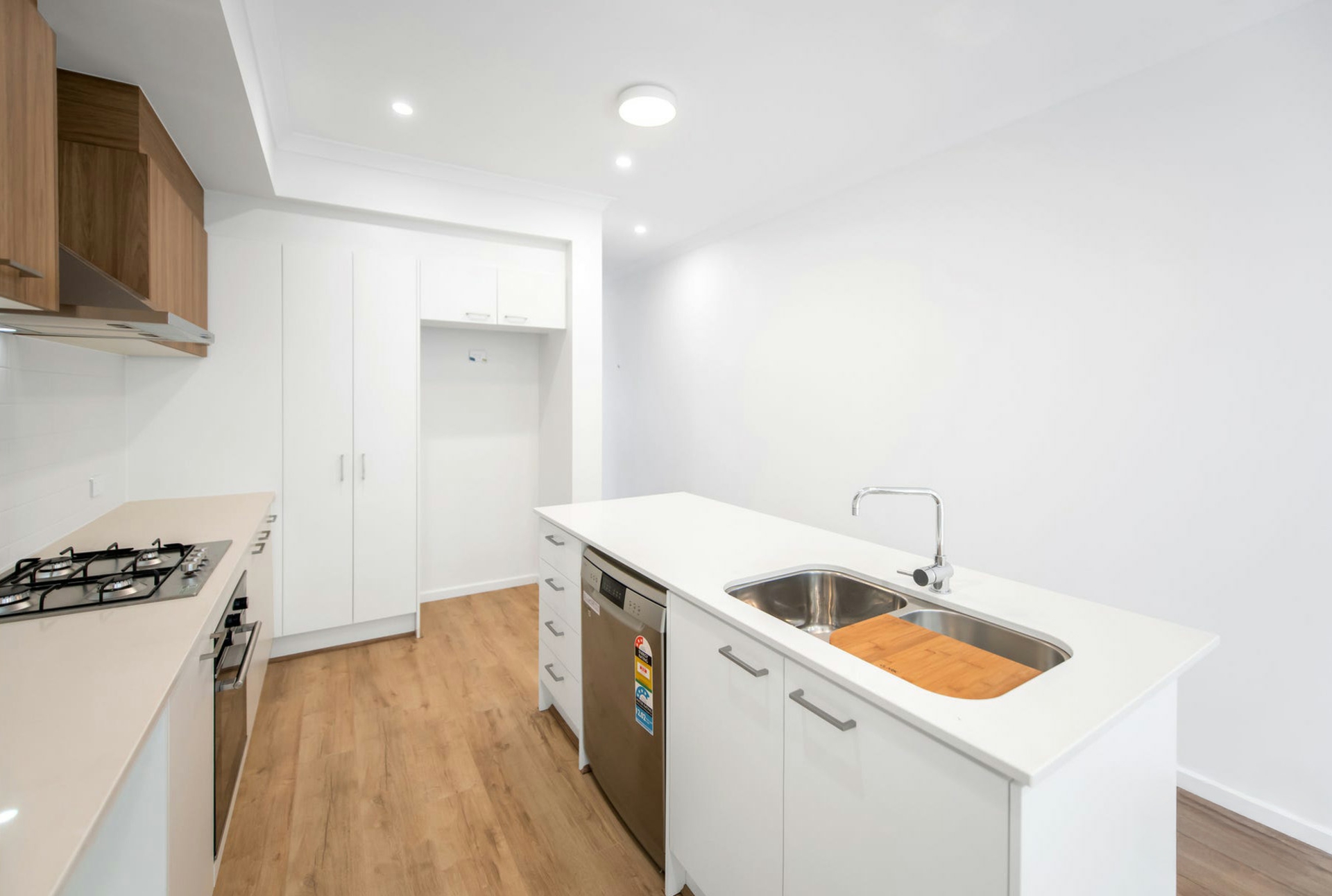 - Modern kitchen with gas cooktop, dishwasher, island bench and ample storage
