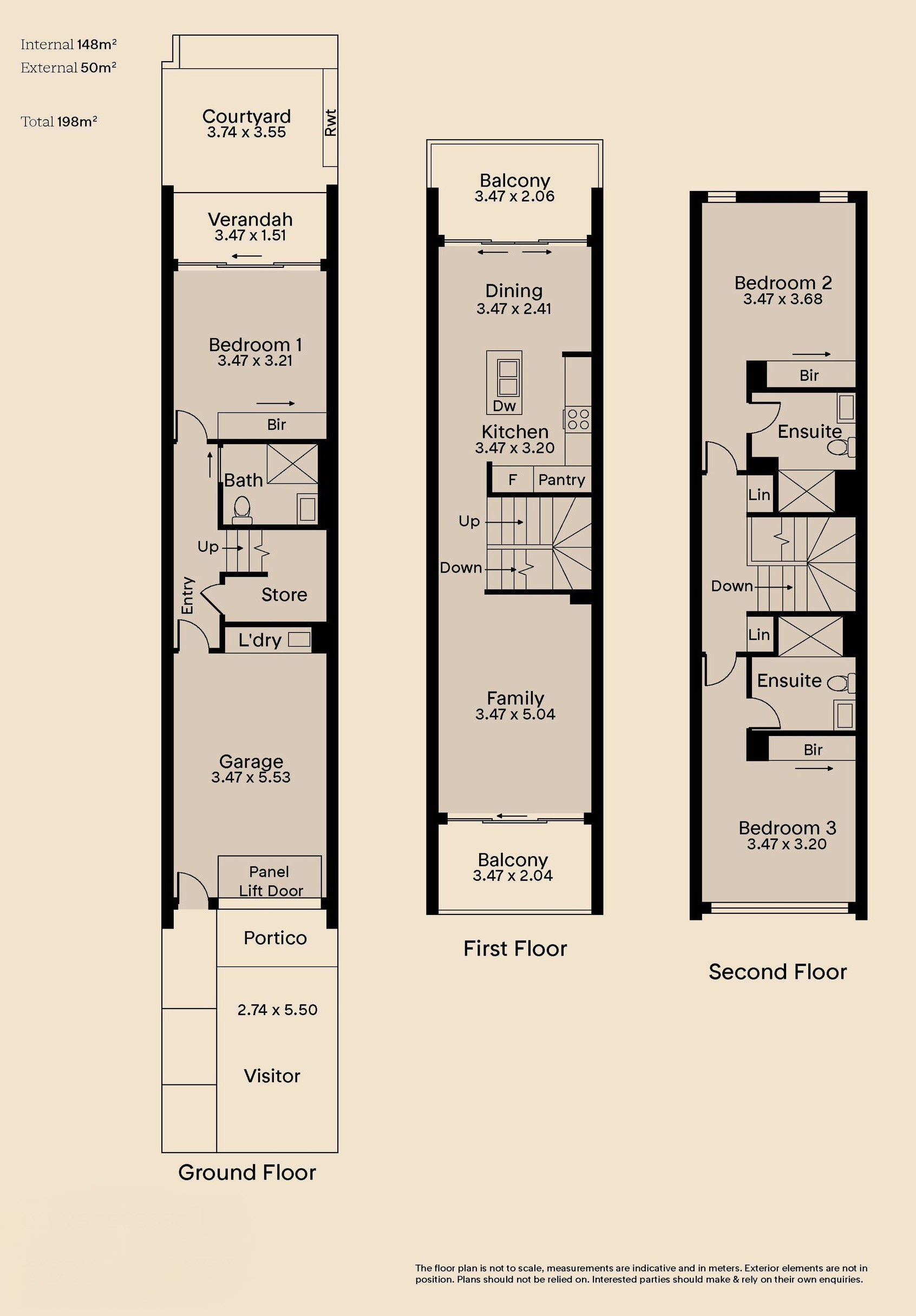 The ground floor provides excellent privacy with a spacious bedroom, bathroom and direct access to a private courtyard. Upstairs, the open plan living and dining area connects seamlessly to balconies at both ends, creating fantastic airflow and natural light. The top level accommodates two additional bedrooms, each with their own ensuite, ensuring comfort and convenience for all occupants.