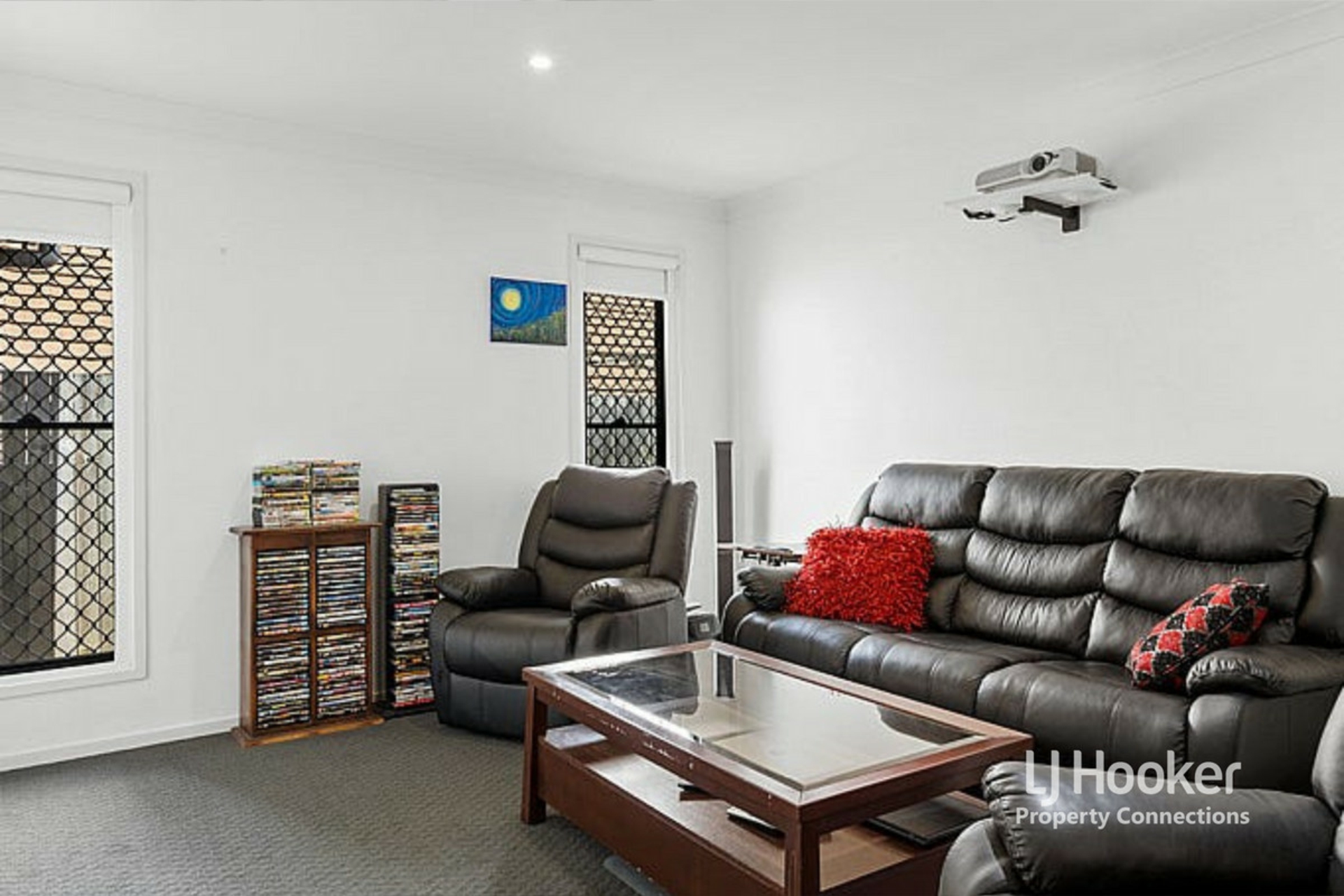 A separate rumpus/theatre room and dedicated study nook offer extra flexibility for families needing space to work or unwind. The practical floorplan is finished with neutral tones, modern tiles, and ducted air conditioning for year-round comfort. Security screens are installed throughout for added peace of mind.