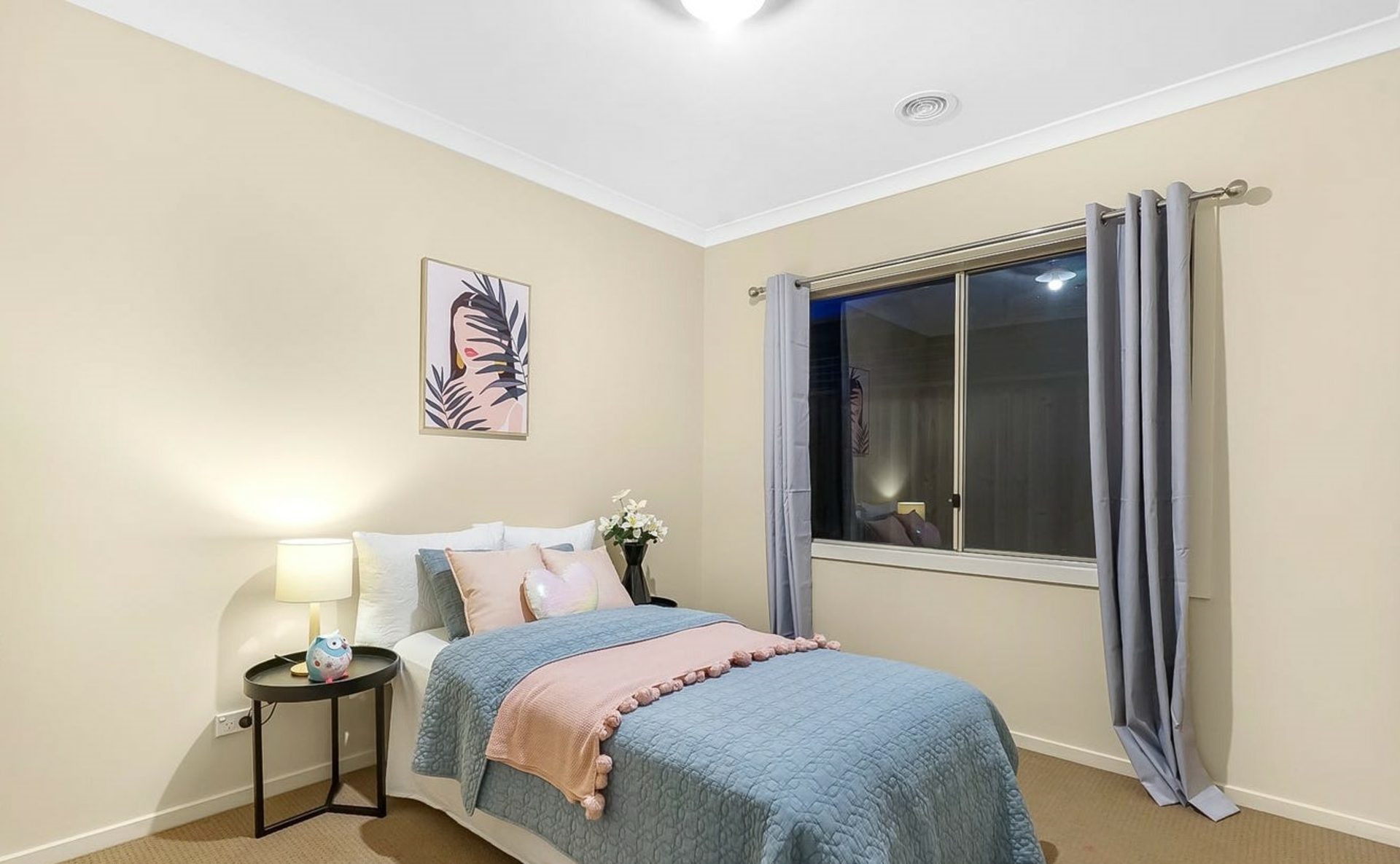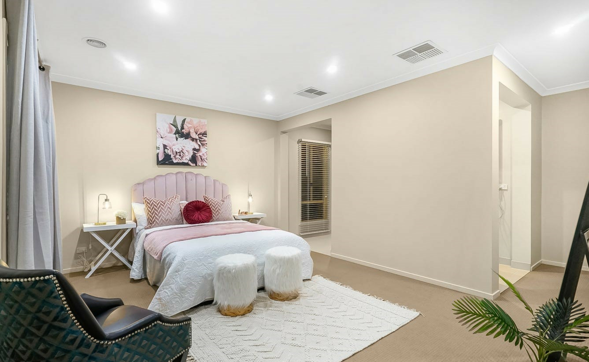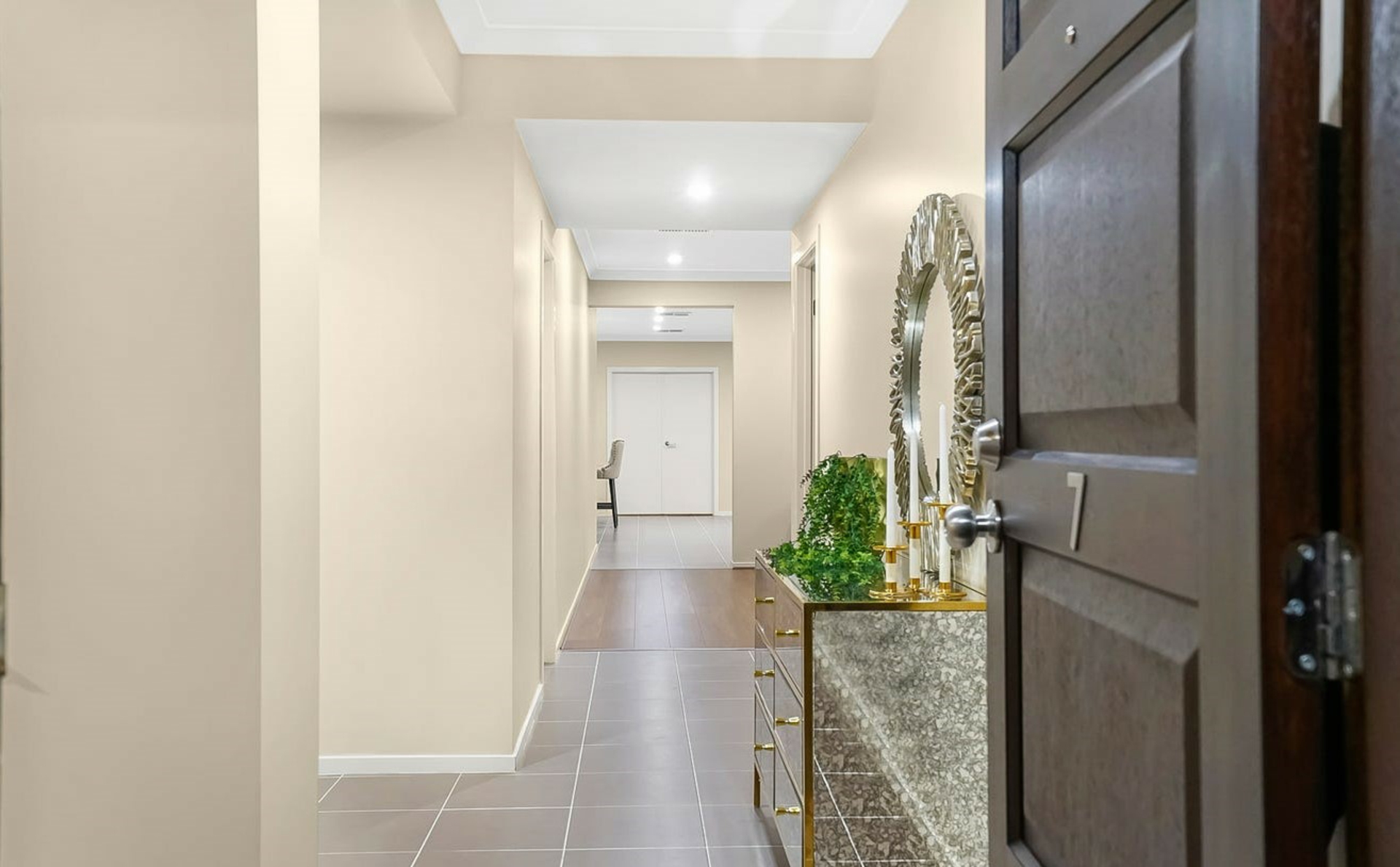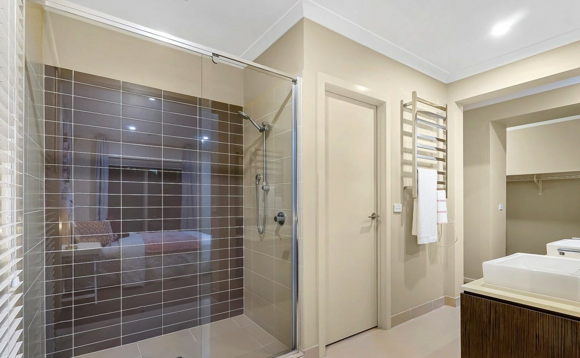 •The extended main bedroom is a true retreat, featuring a wide double door entrance, a huge walk-in robe, and an ensuite with double vanity, oversized mirror, oversized tiled shower, heat lamp, and heated towel rail. The additional second, third, and fourth bedrooms all come with built-in robes, providing ample storage and comfort for family members or guests.