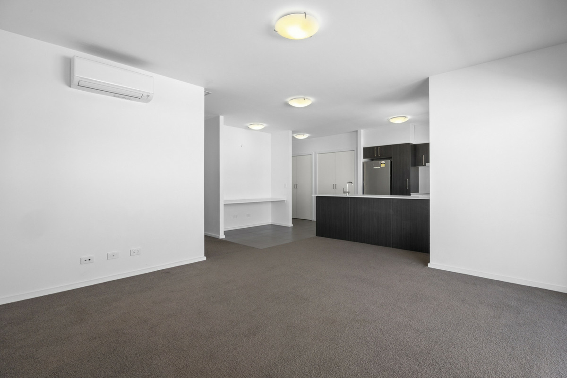 The sun filled open plan living room is accompanied by an extra large balcony overlooking the park, reverse cycle air conditioner and an in-built study nook.