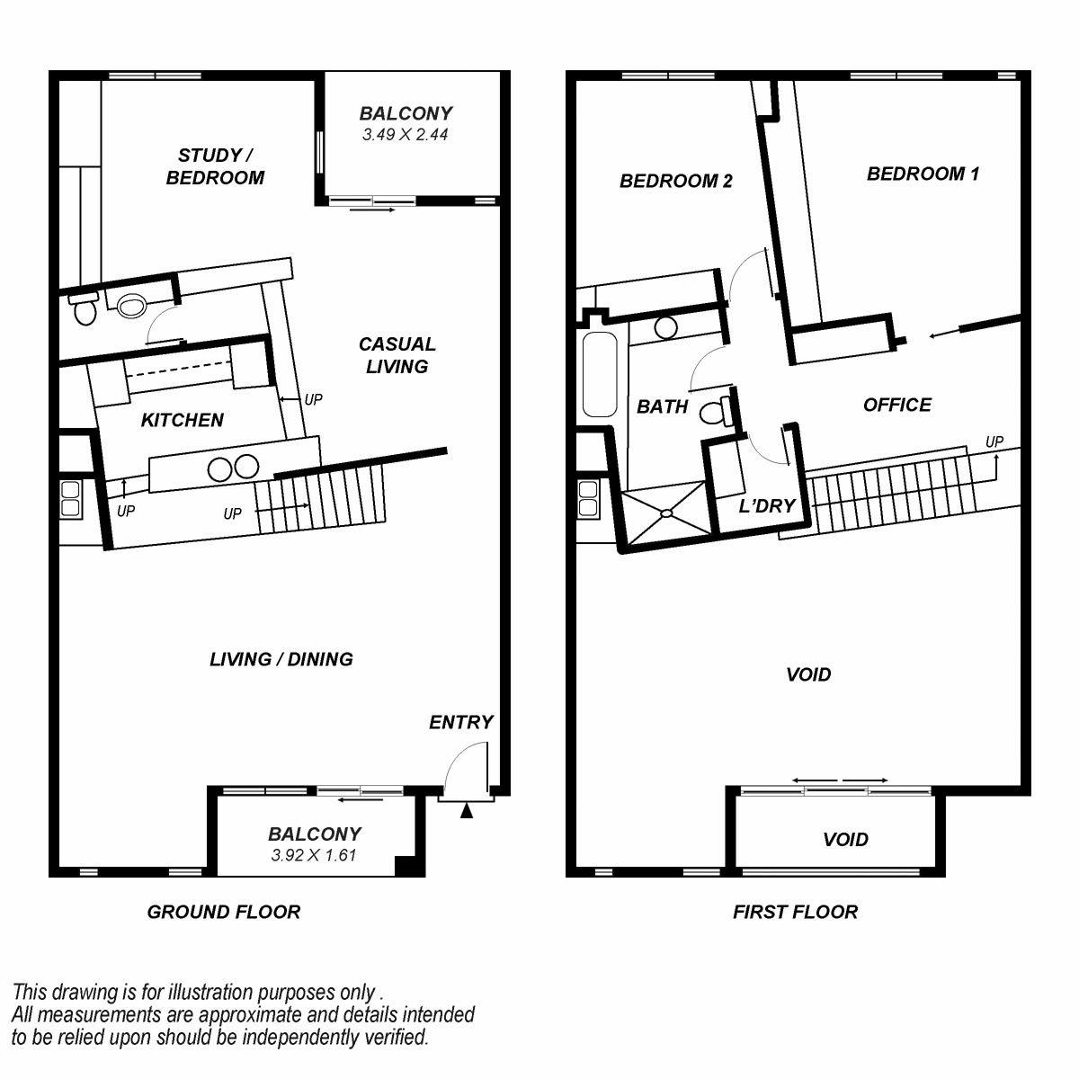 Upstairs features two big double bedrooms both with built-in robes and main bathroom.