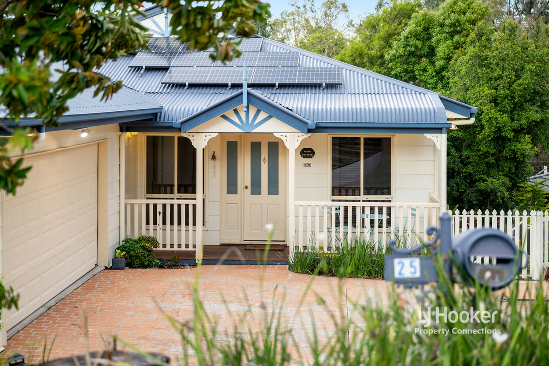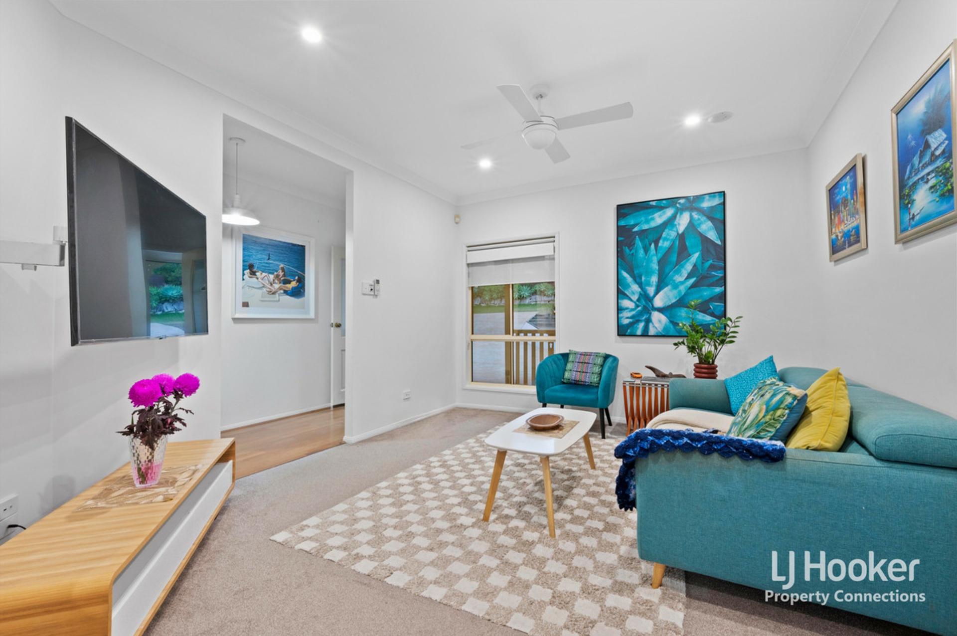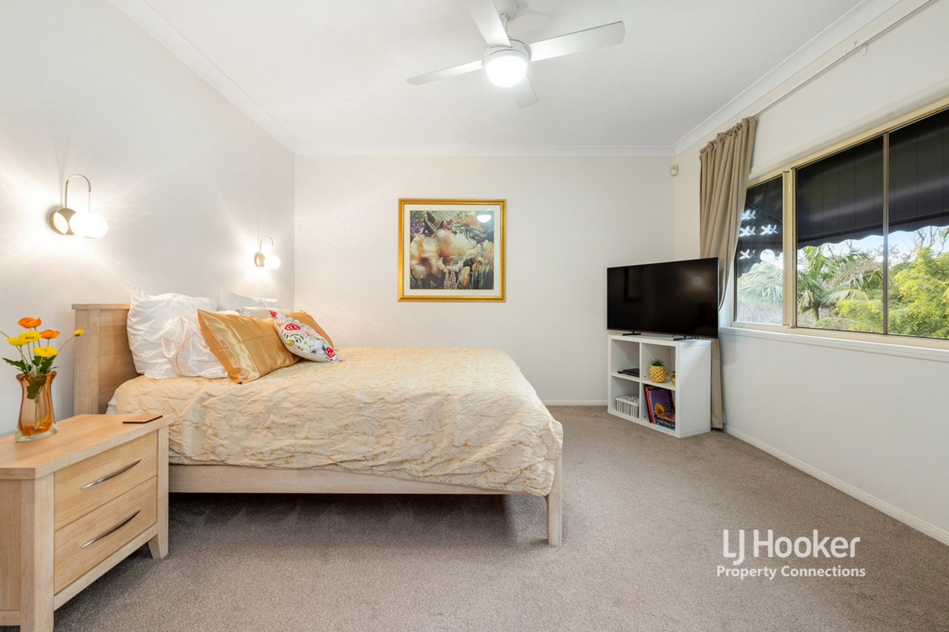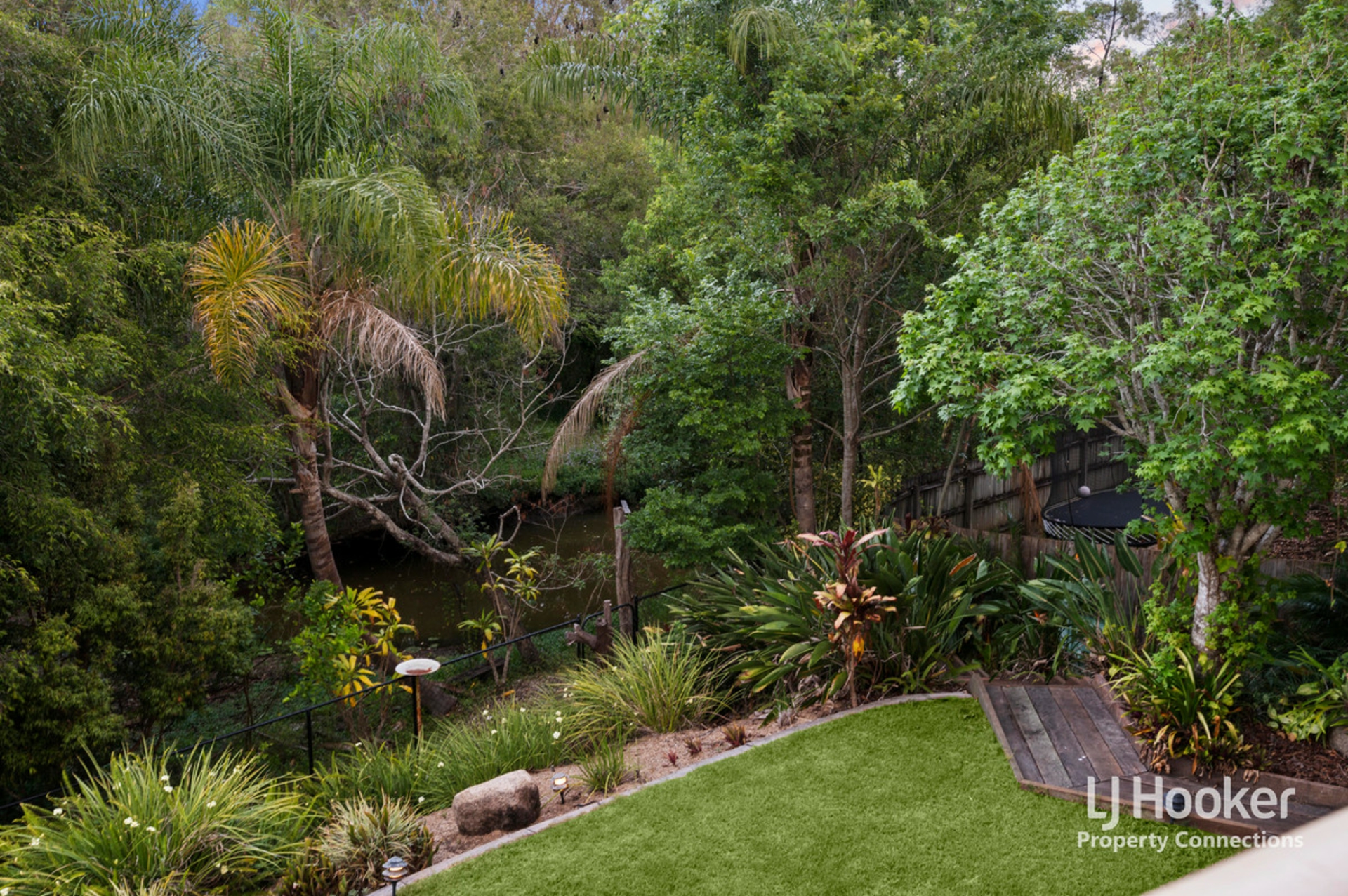 This newly renovated home, positioned on an elevated 801m2 block backing directly onto serene bushland and a creek, is ready for you to move in without having to change a thing. In addition to a flexible five-bedroom layout with three bathrooms; multiple indoor and outdoor living spaces; the home offers environment- and cost-saving features including a 6.6kW solar system and large water tank, along with added extras such as stainless-steel security screen doors and keypad entry doors. Multiple storage rooms/workrooms and cupboards are another key offering.