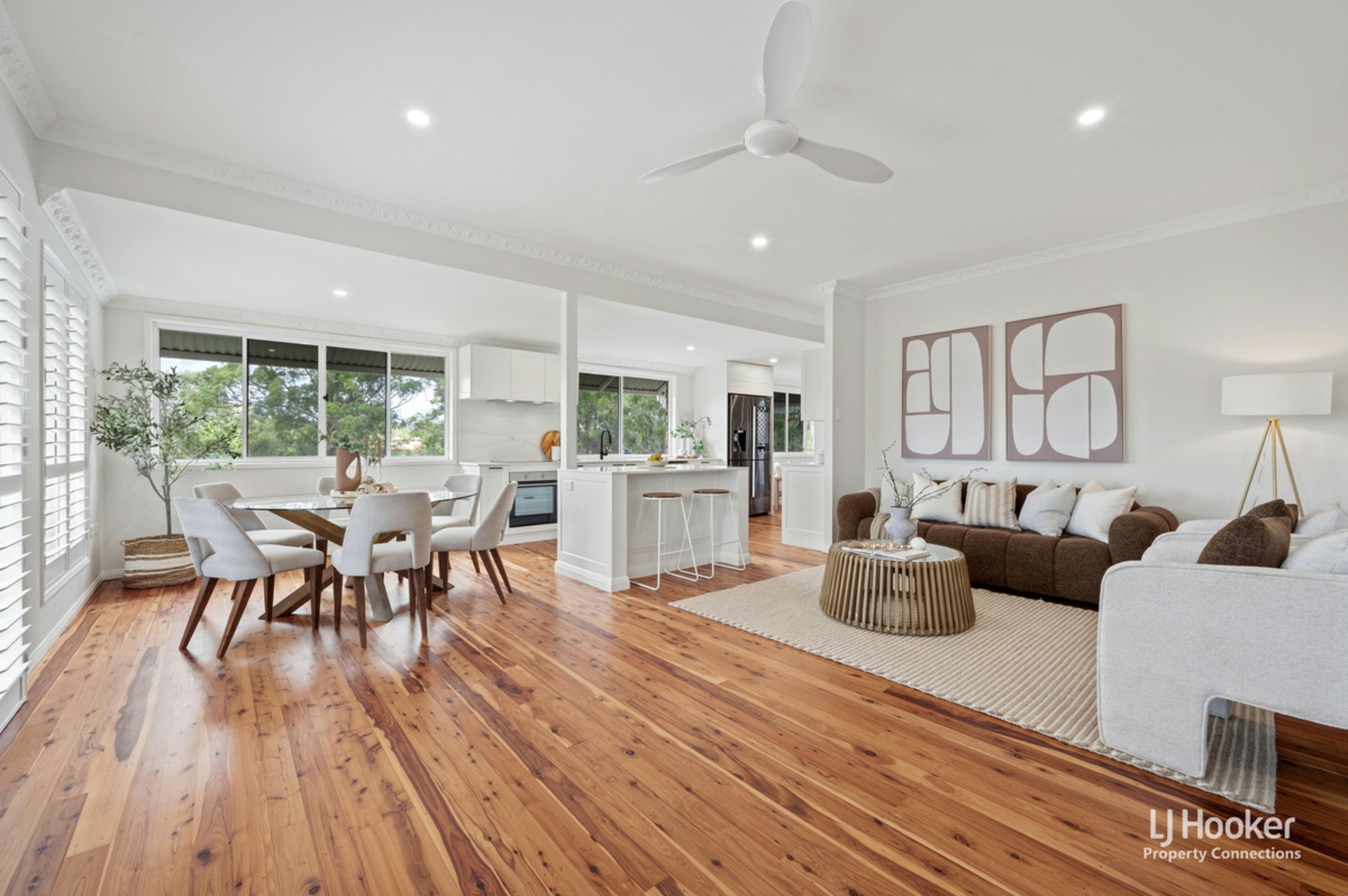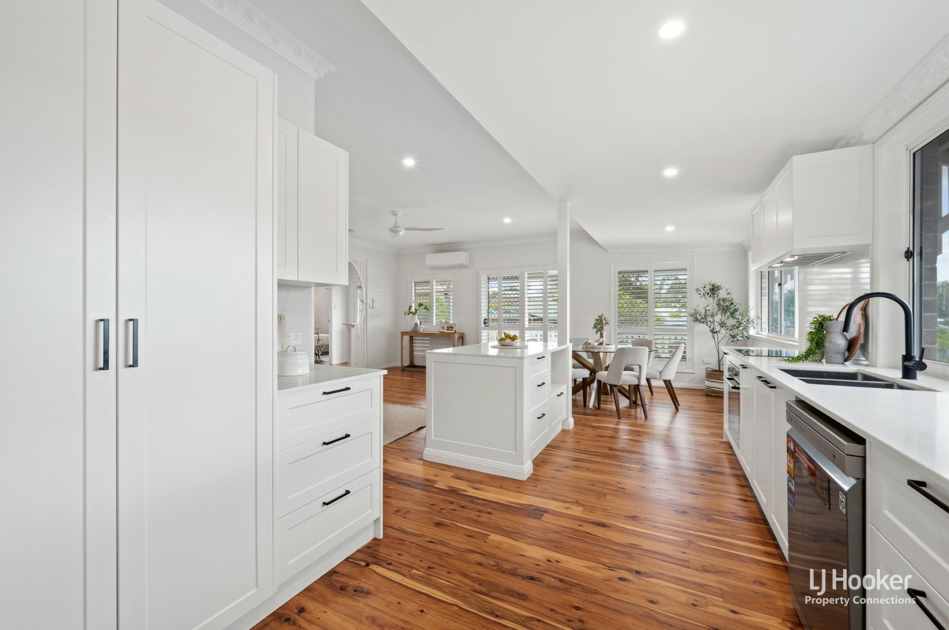 • Air-conditioned open plan living & dining area with plantations shutters
