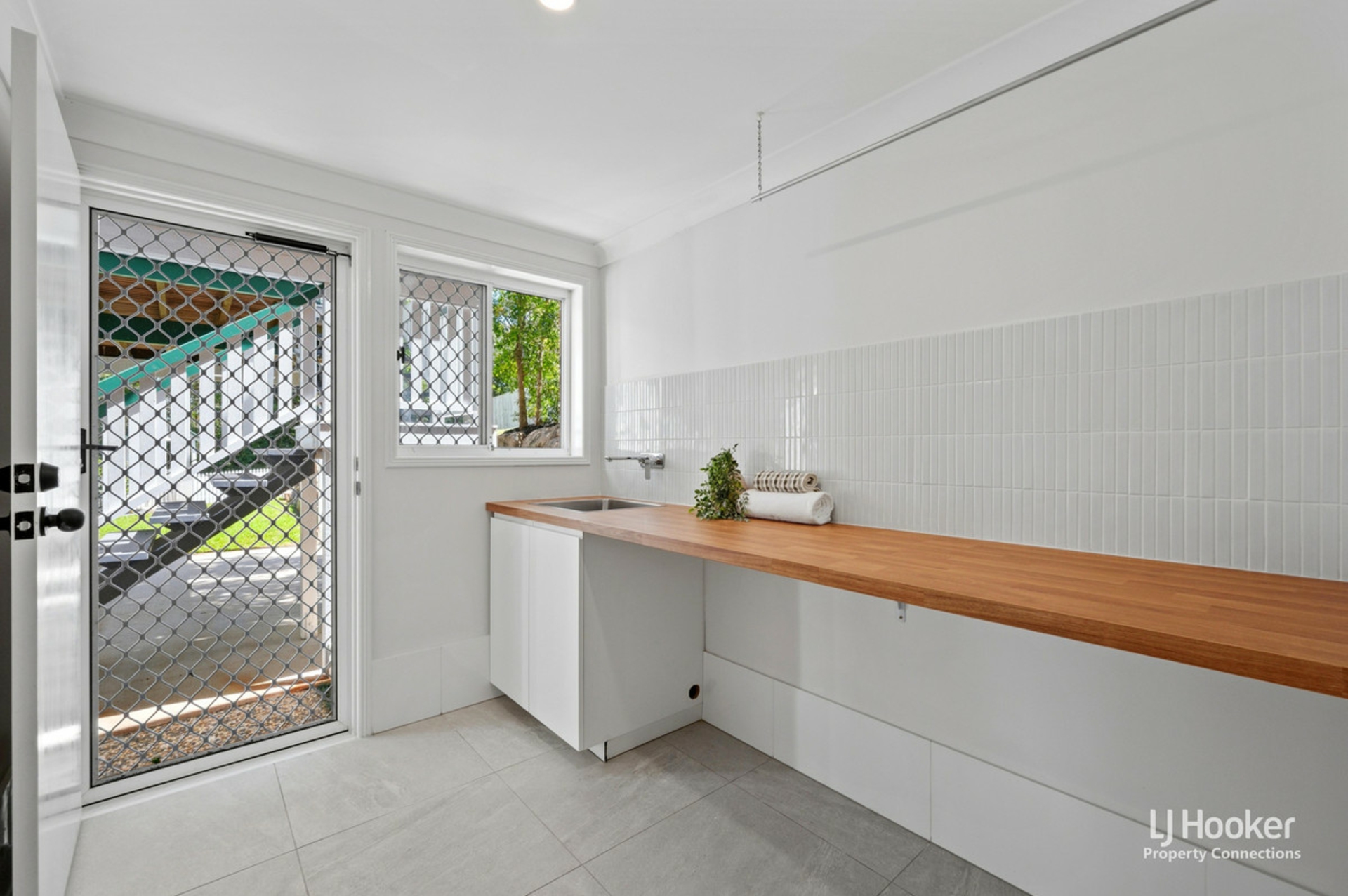 • Spacious laundry with timber bench and storage
