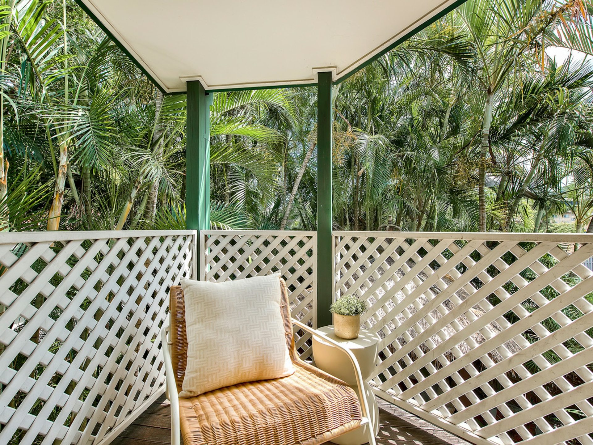 Upstairs, the home continues to impress with three well sized bedrooms, all positioned around a spacious main bathroom that has been renovated with floor to ceiling tiling, a freestanding bath, and quality fixtures and fittings. The primary bedroom features split system air conditioning, a walk in robe, and a Juliet balcony overlooking the terraced outdoor space below. The additional bedrooms are well proportioned and include built in wardrobes and ceiling fans.