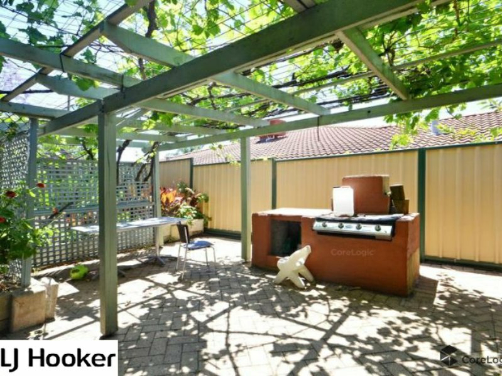 The Alfresco features a great Mango tree at its hub with several separate reticulated gardens each a breath of tranquillity encompassing the entire home like a moat of gardens and nestling under the shade is a grapevined pergola housing a built in BBQ area