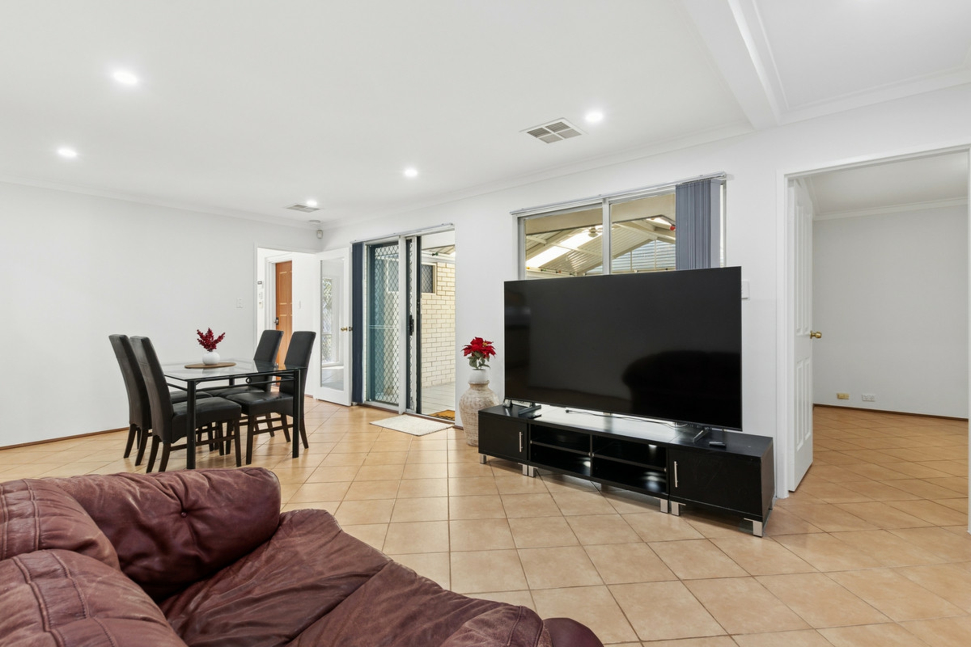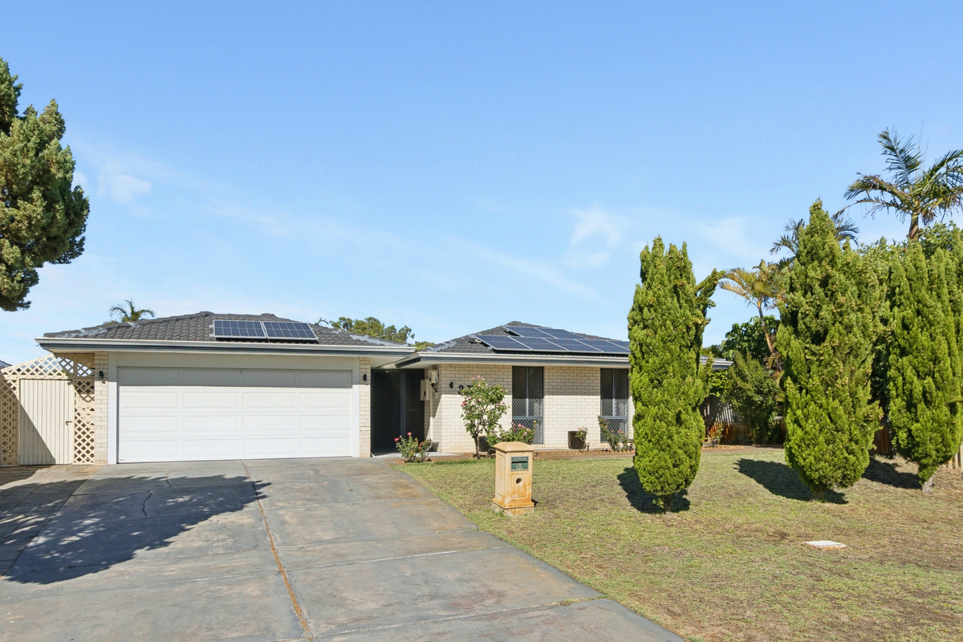 The home is equipped with ducted air conditioning, solar panels for energy efficiency, and security screens for added peace of mind.