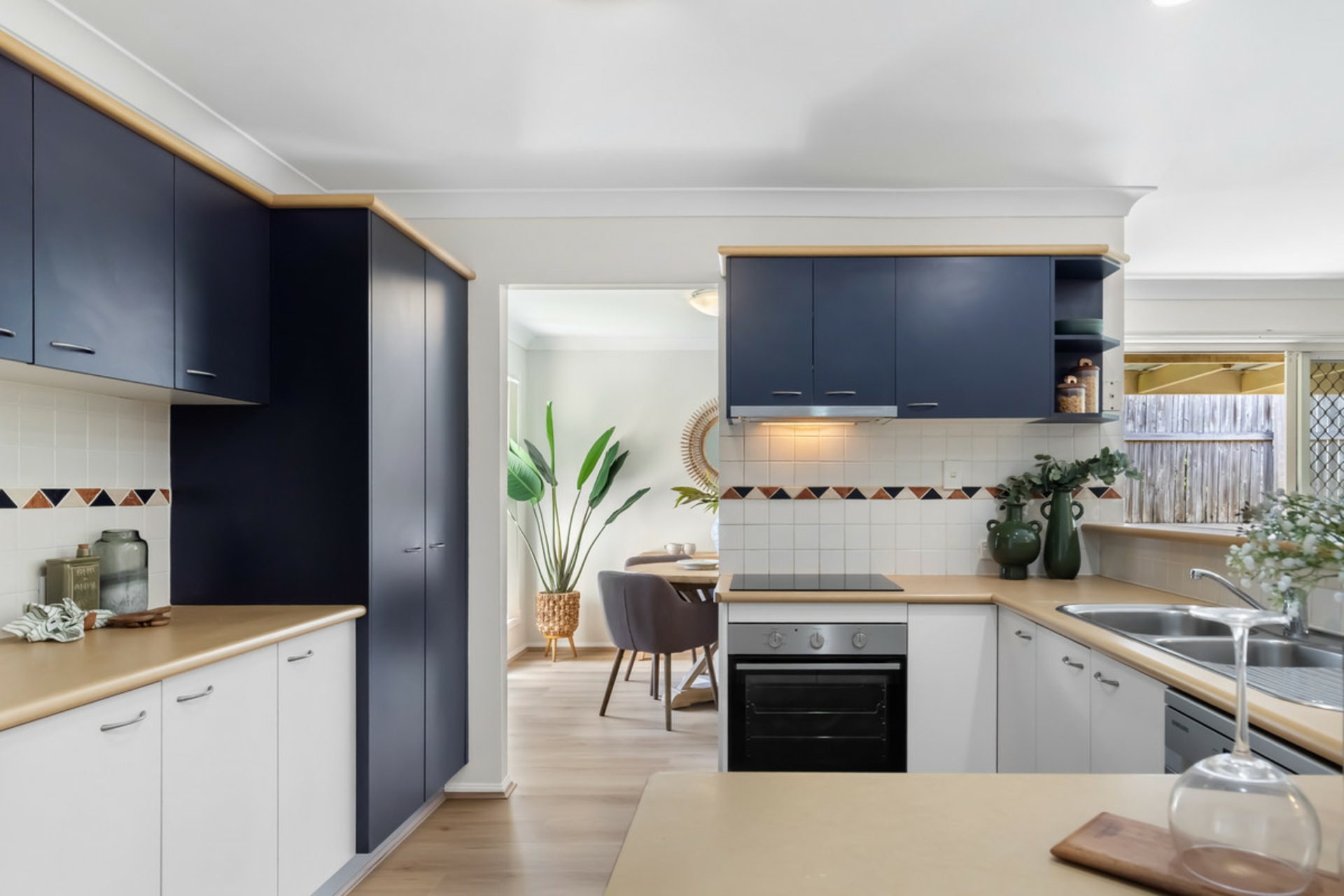 A dining room that connects conveniently to the kitchen and a generous family room with ceiling fan. A sliding door connecting the inside to outside. The heart of the home kitchen offers a new stainless-steel dishwasher and new oven, lots of cupboards and plenty of bench space.