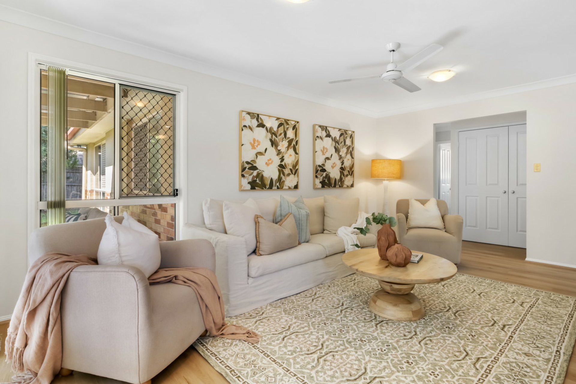 Step inside to a soothing neutral colour palette and light filled spaces. The air-conditioned separate lounge room with quaint bay window provides each family member a space to relax in.