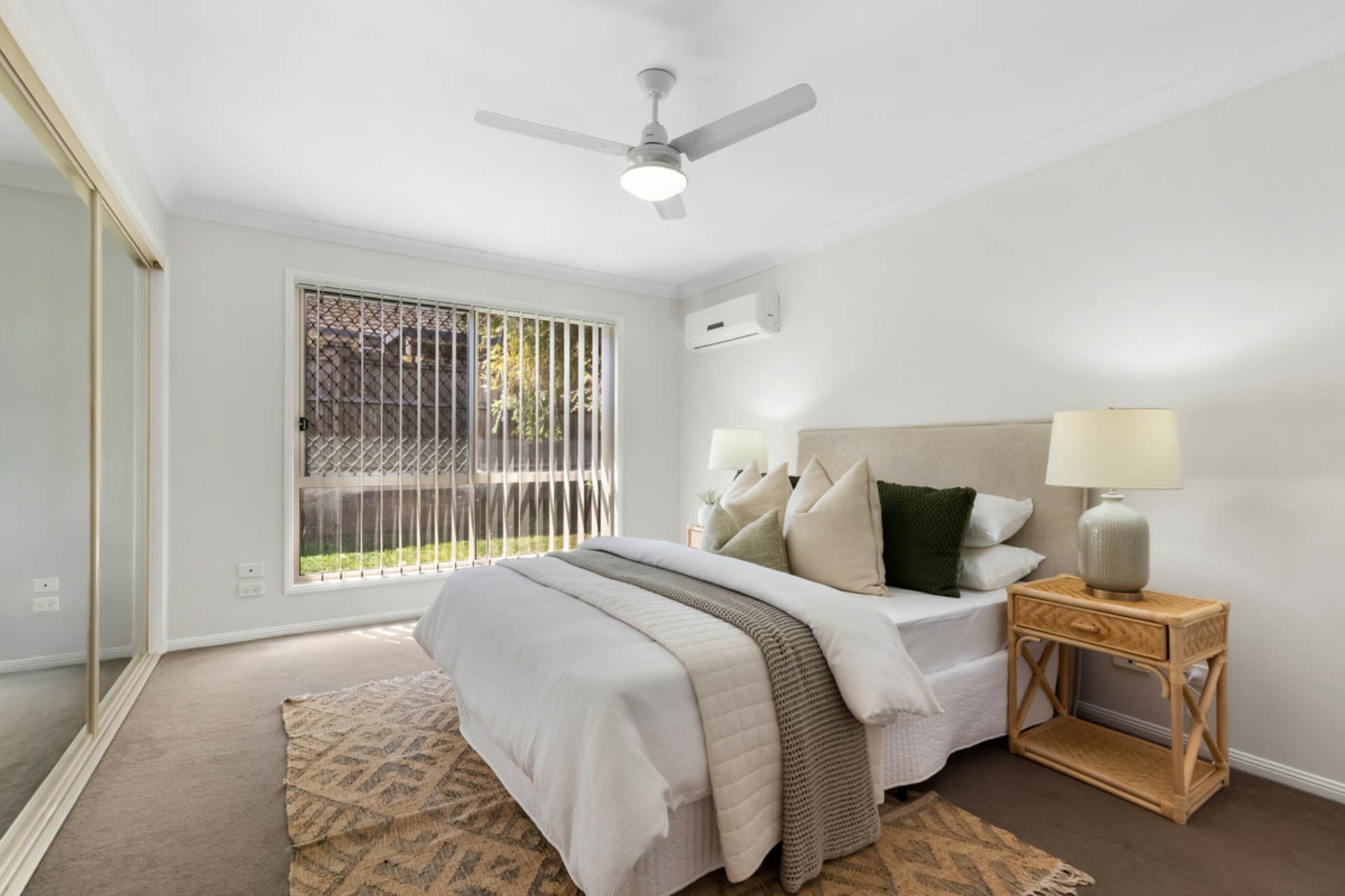 There are four bedrooms all with built-ins and ceiling fans, including the spacious and air-conditioned master suite, with triple wardrobe and neat and tidy ensuite. The main bathroom offers lots of bench space, a separate shower and bathtub, and a separate toilet.