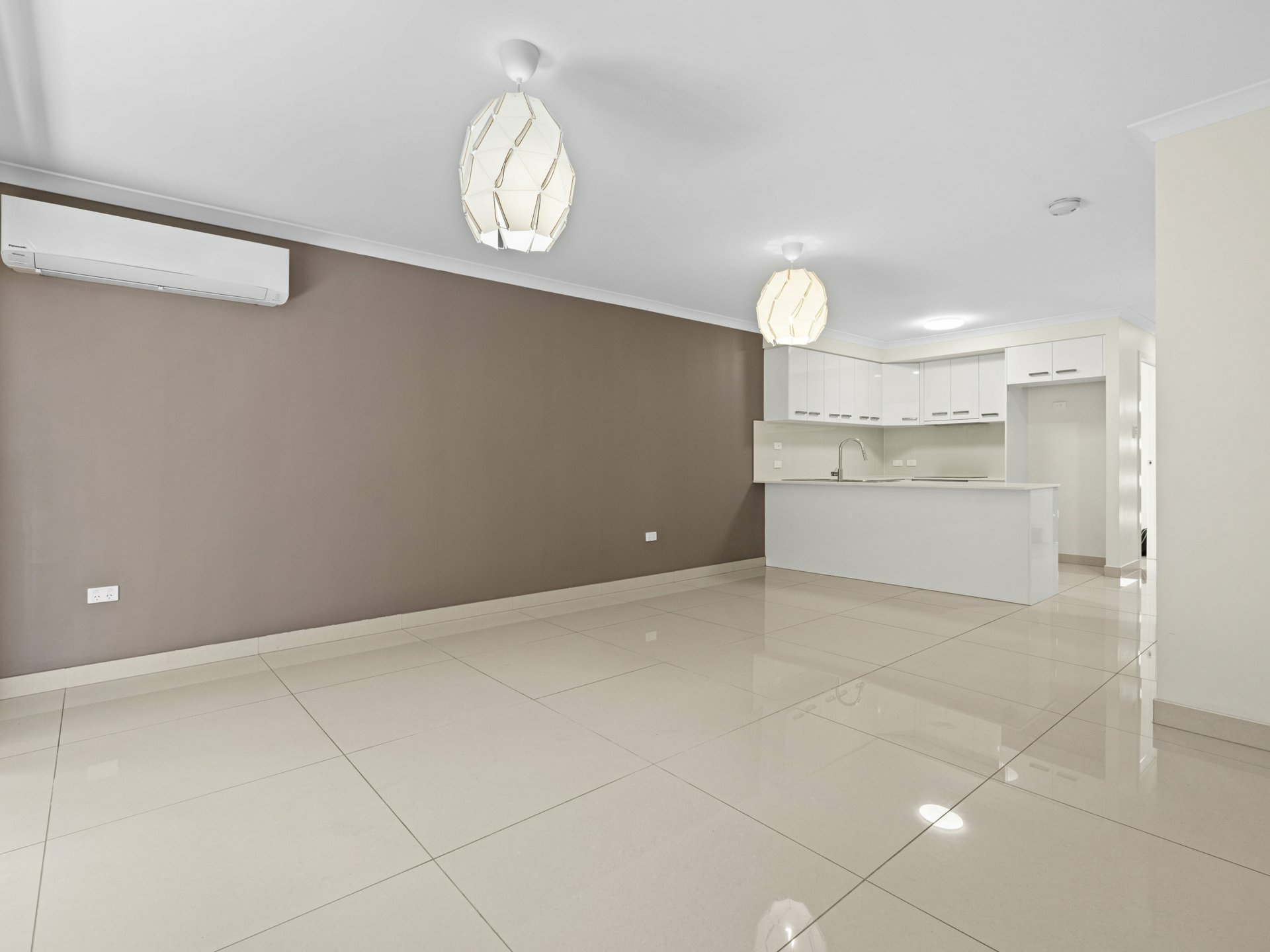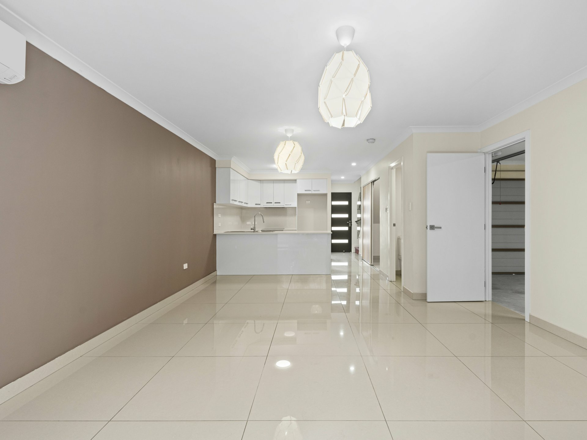 - Tiled, open-plan kitchen/living/dining downstairs with A/C & sliders onto an alfresco patio