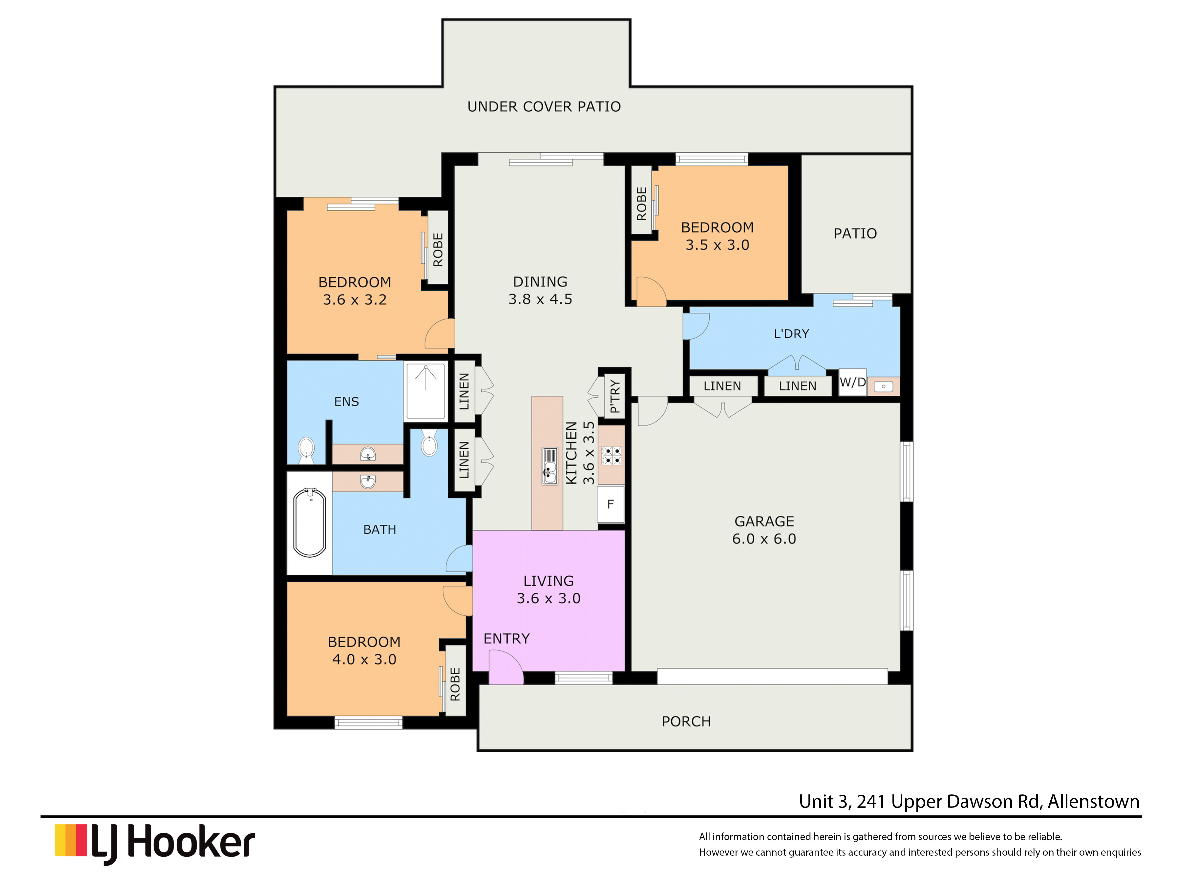 Featuring two comfortably sized bathrooms, the main bathroom comes complete with a relaxing bathtub. All bedrooms come with built-in wardrobes, providing ample storage space. The quiet and private back patio offers the perfect place to unwind and relax after a long day.