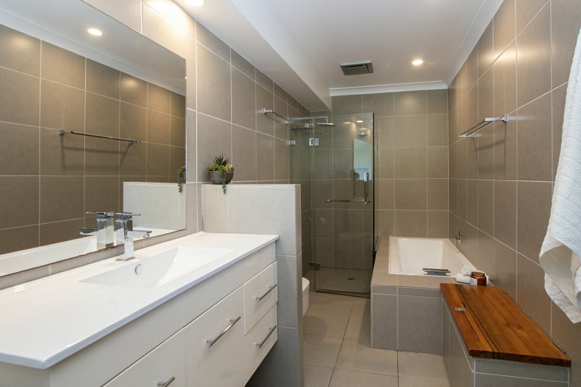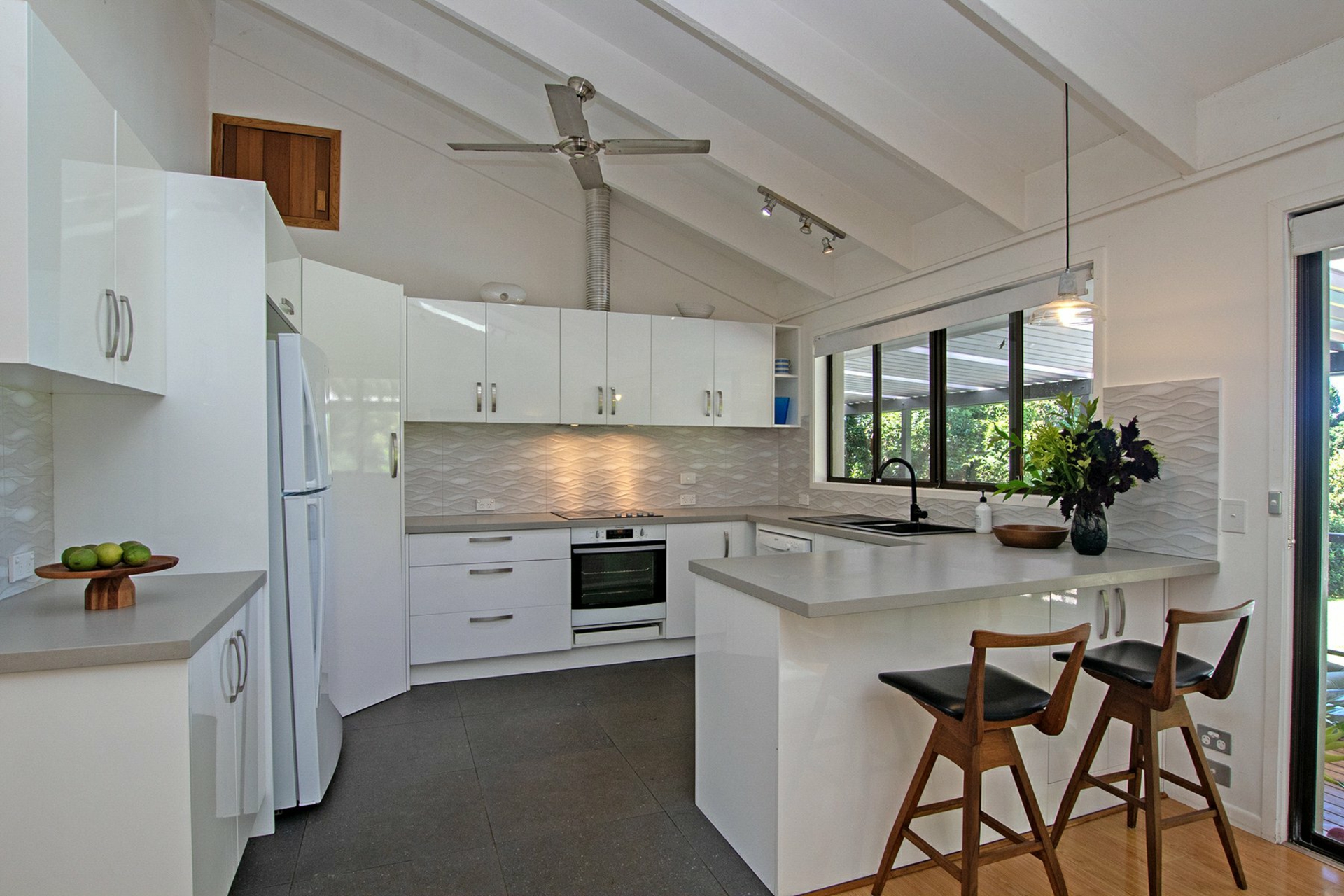 • Sleek designer kitchen with pantry, stone bench tops, dishwasher and high end appliances