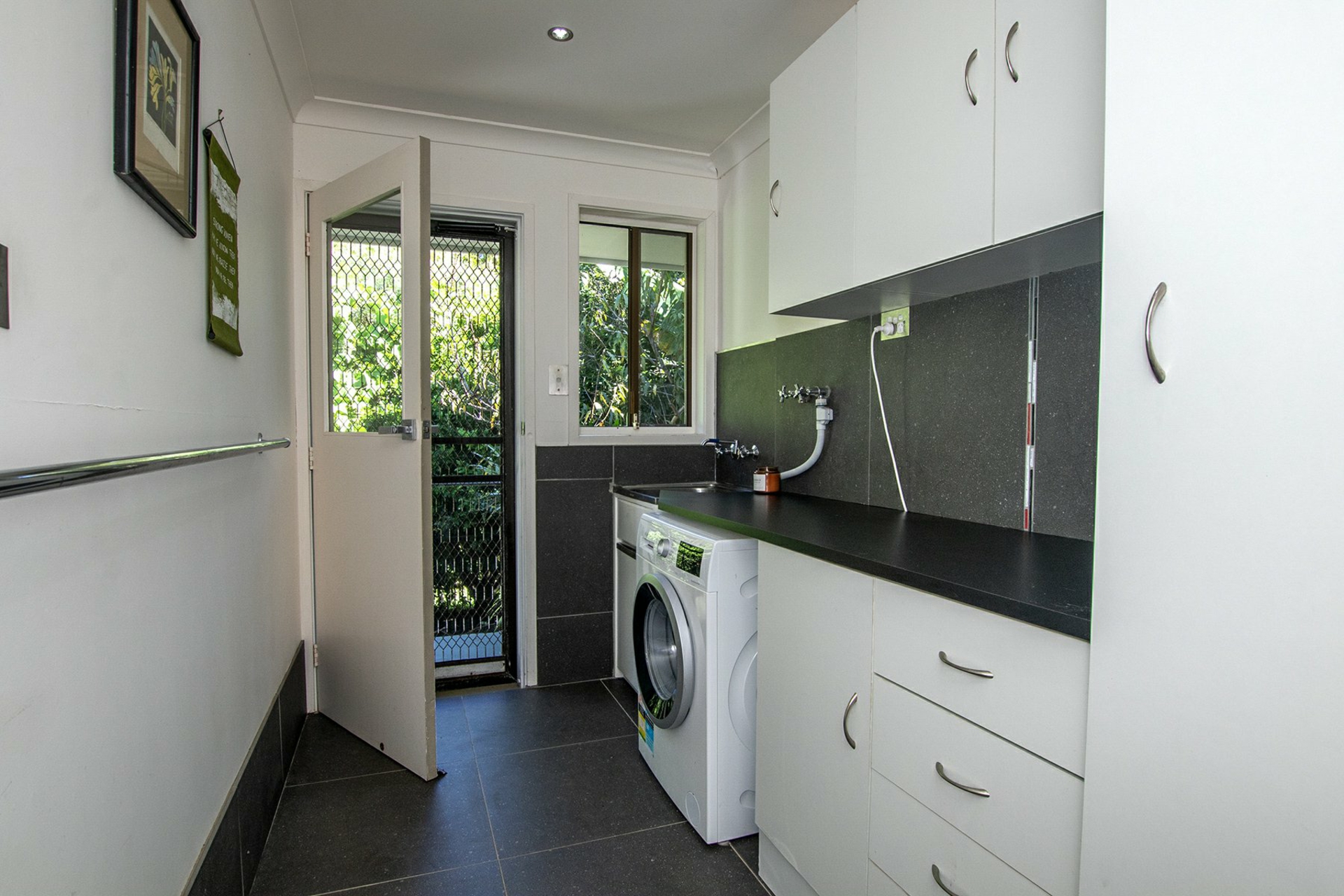 • Main bathroom and oversized laundry with storage