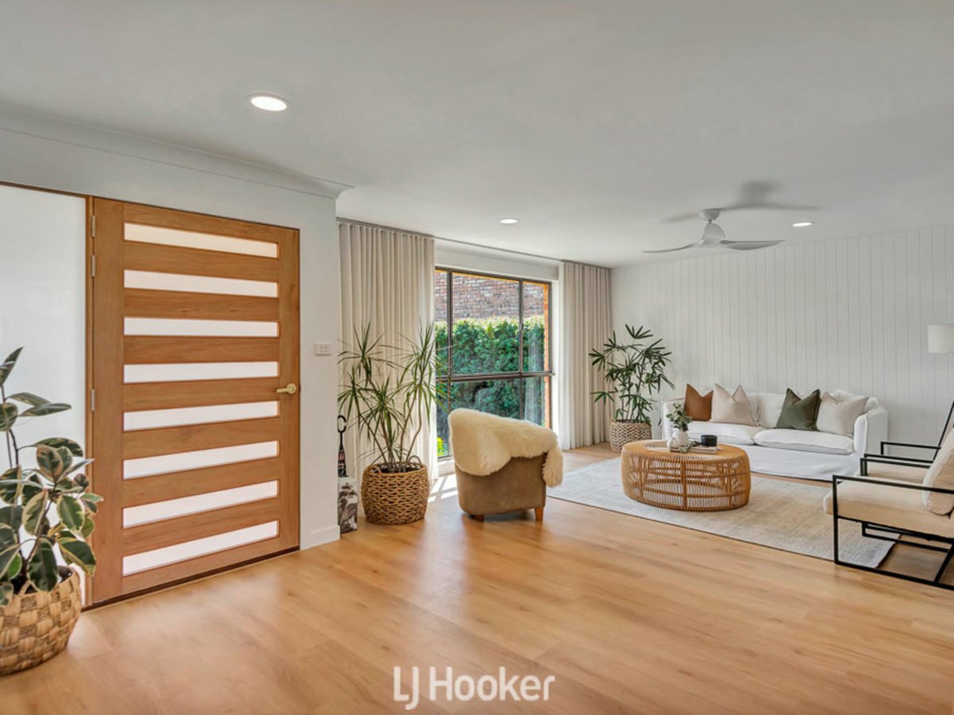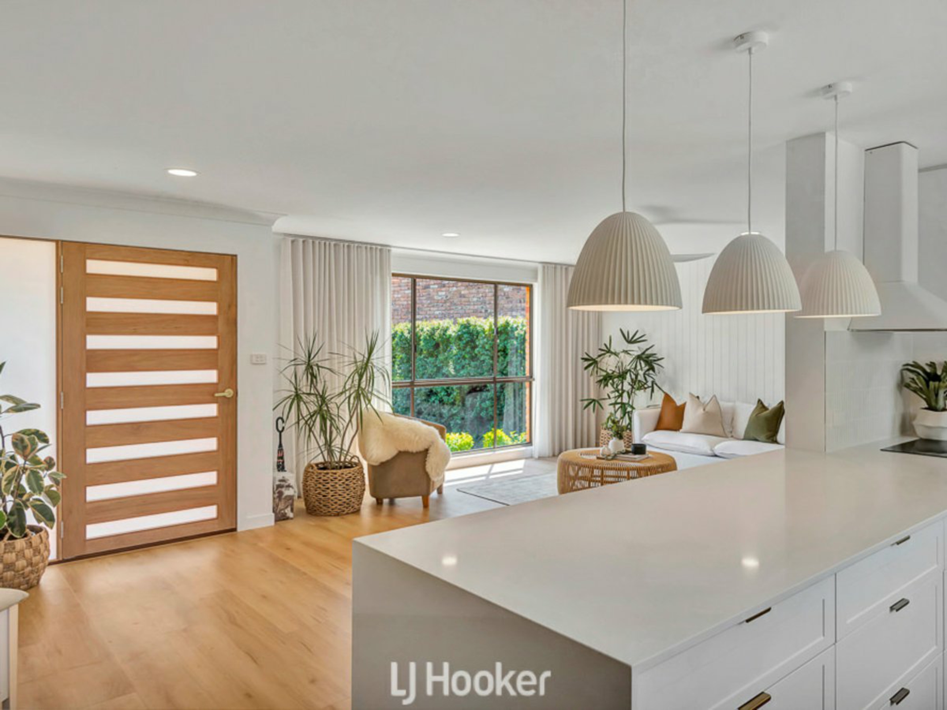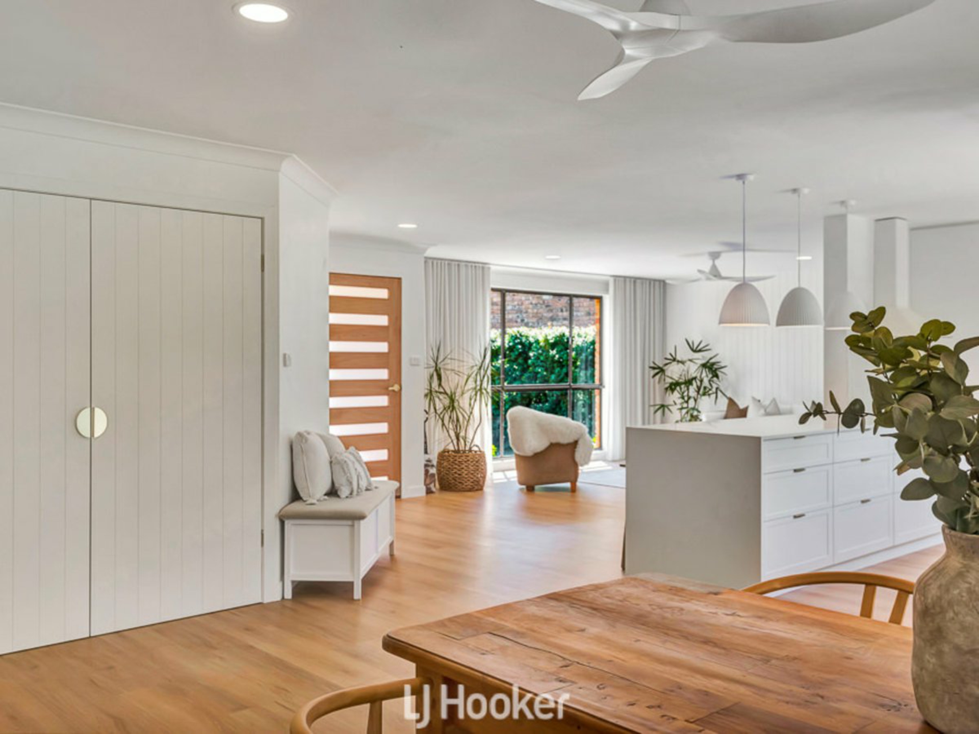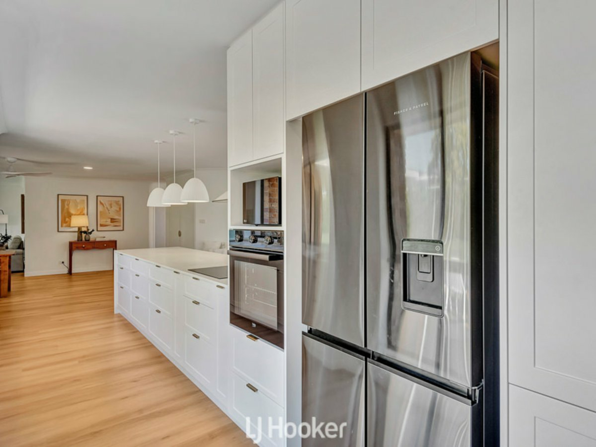 The stylishly renovated kitchen offers plenty of storage with soft-closing drawers, open-plan pantry nook, all new appliances including oven, ceramic cook-top plus dishwasher, large double fridge space and boasts beautiful stone bench-tops.