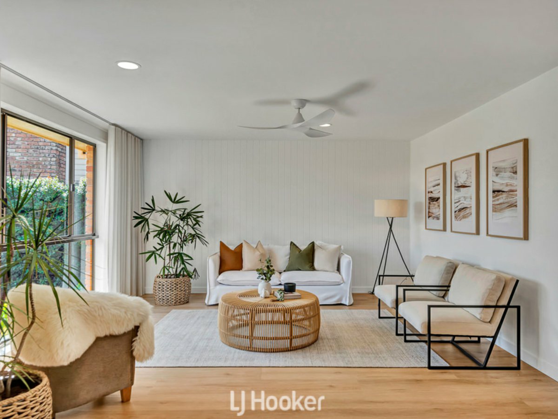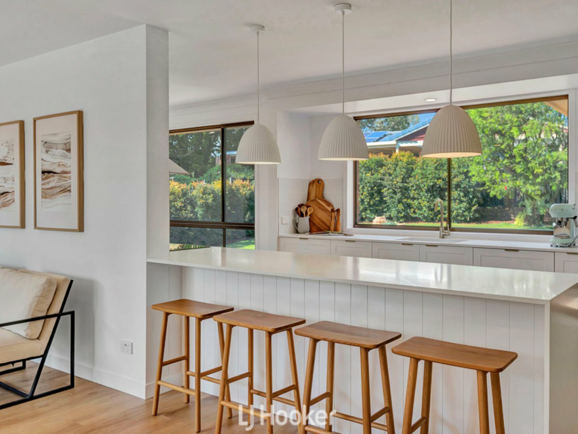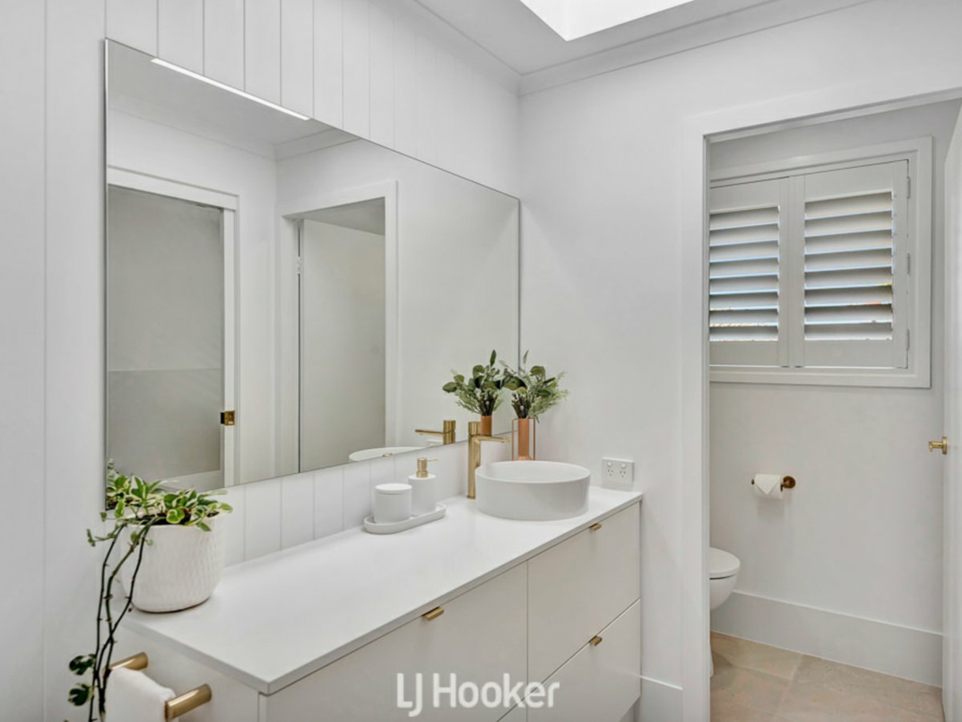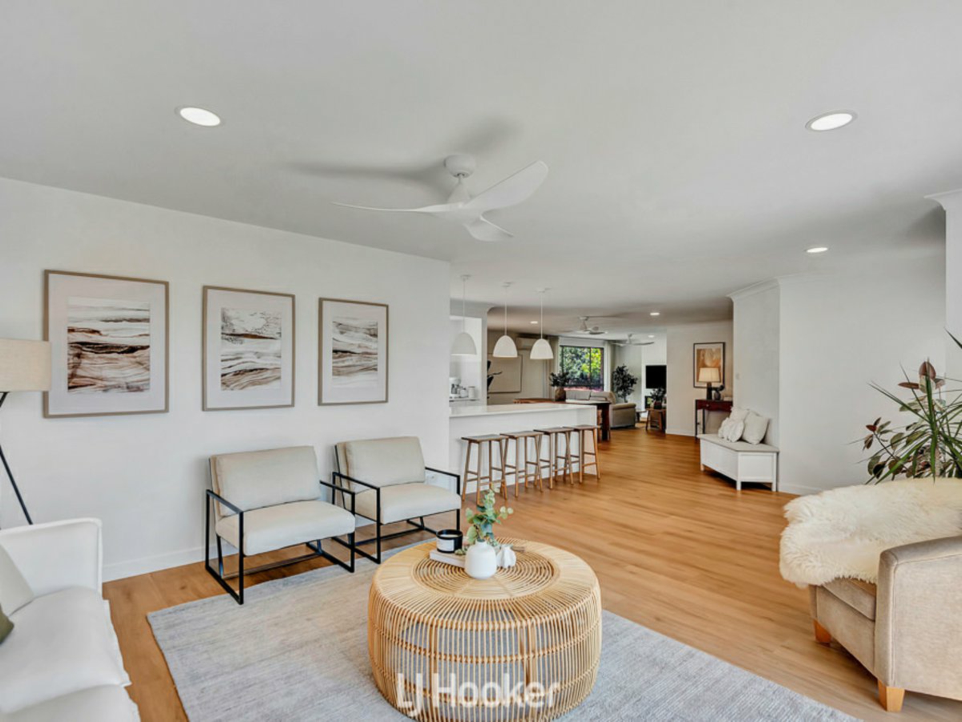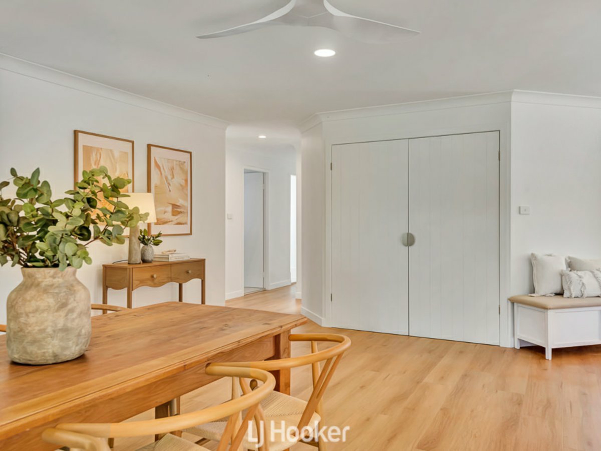The stylishly renovated kitchen offers plenty of storage with soft-closing drawers, open-plan pantry nook, all new appliances including oven, ceramic cook-top plus dishwasher, large double fridge space and boasts beautiful stone bench-tops.