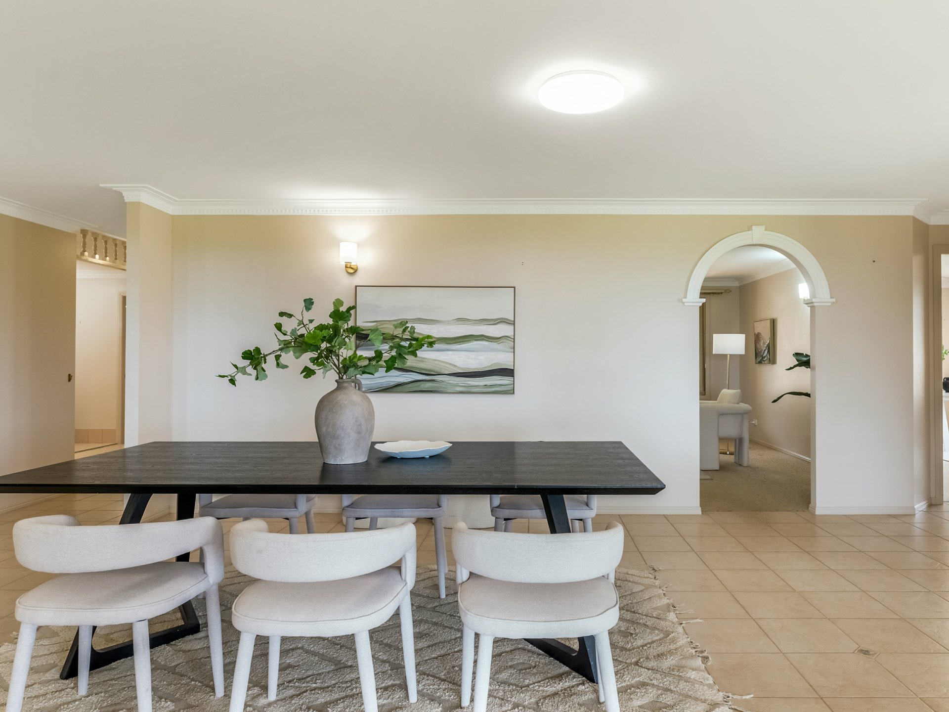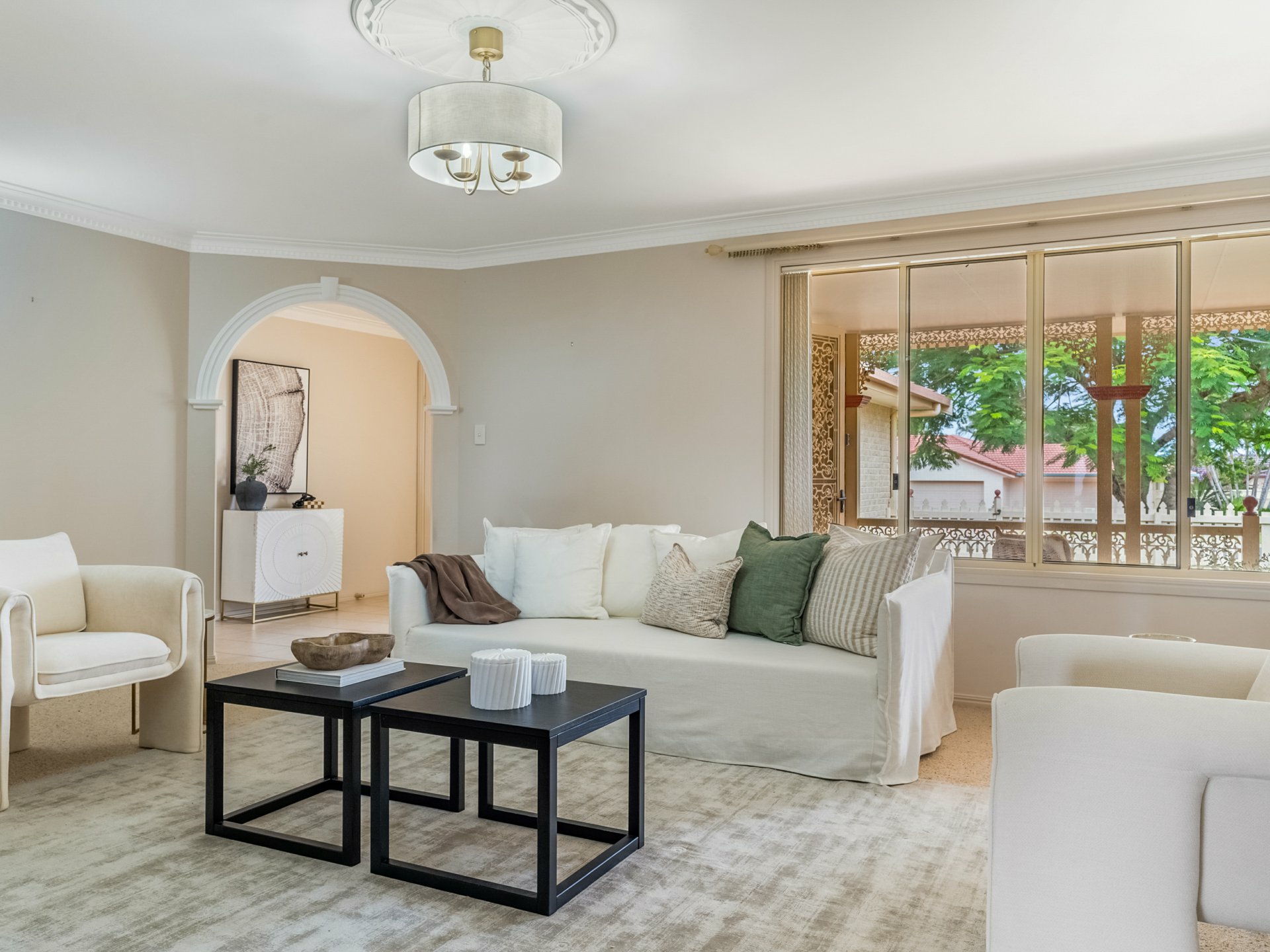 The sun-filled home features neutral tones throughout with the front entry leading to a central formal lounge. The heart of the home consists of an informal dining area and an enclosed, light-filled, breezy sunroom, perfectly positioned to capture the eastern outlook.
