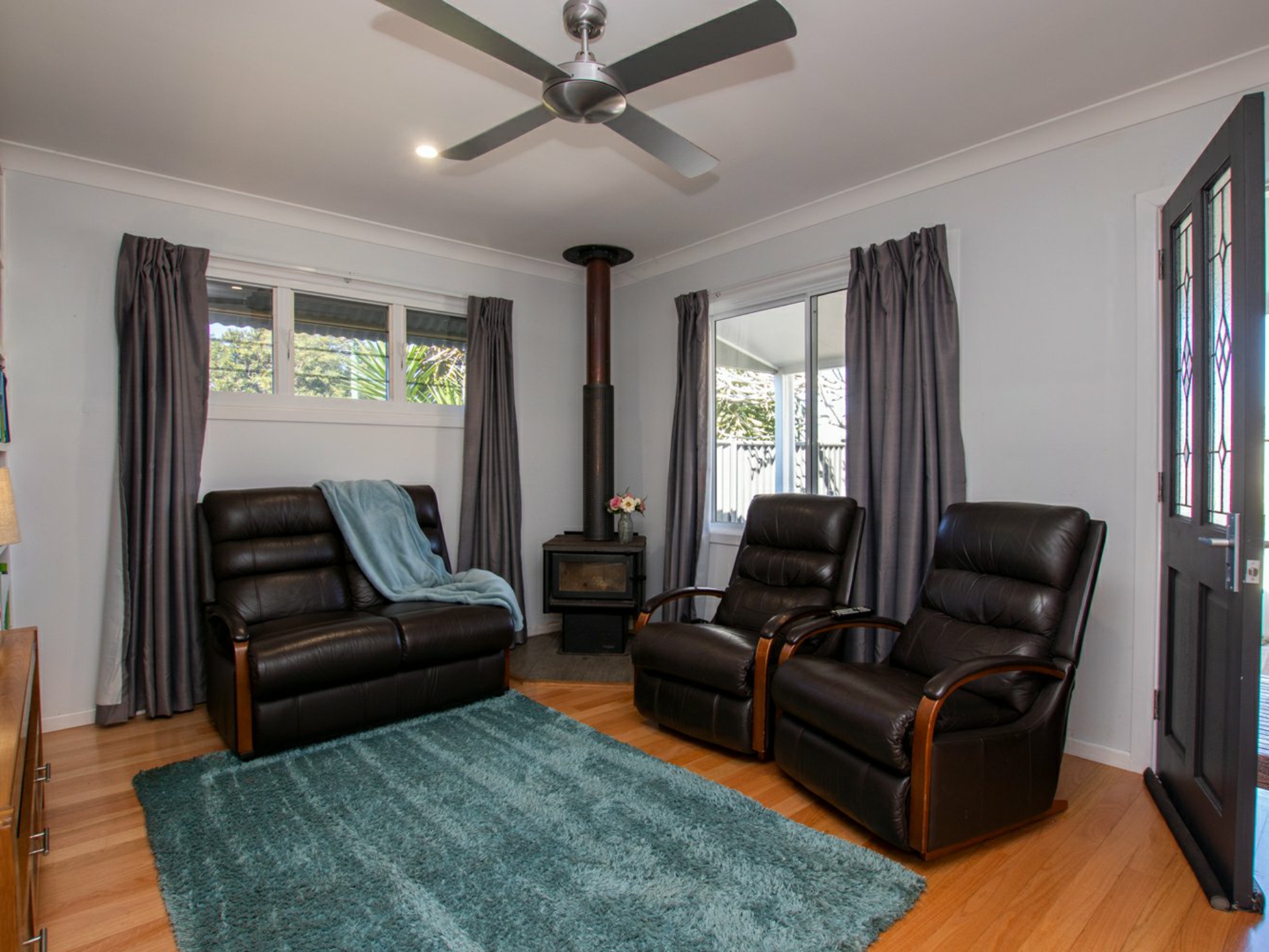 • Formal living room with wood heater.