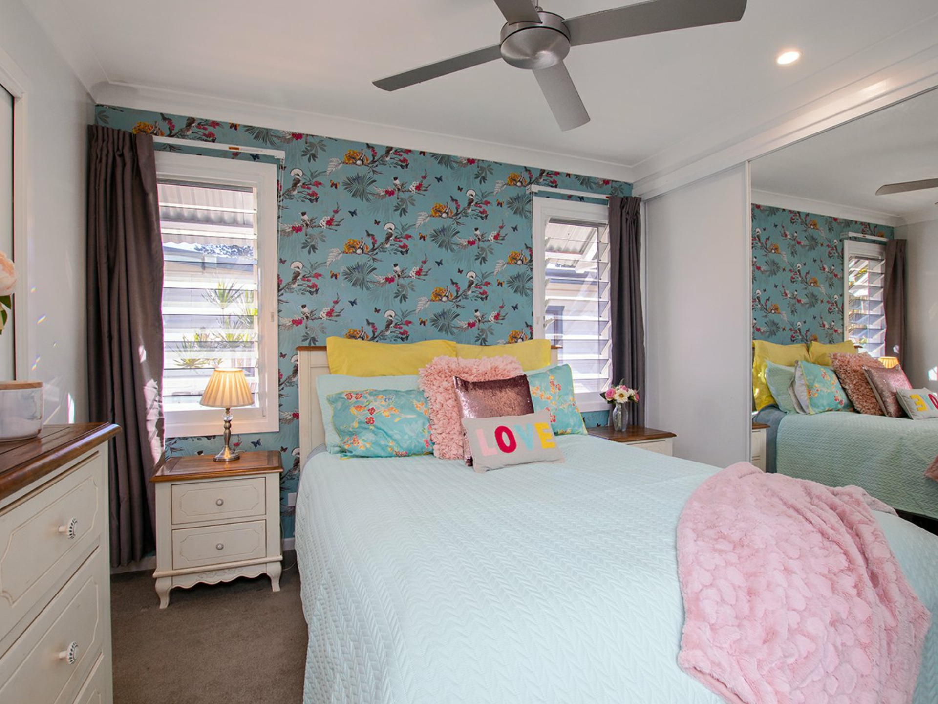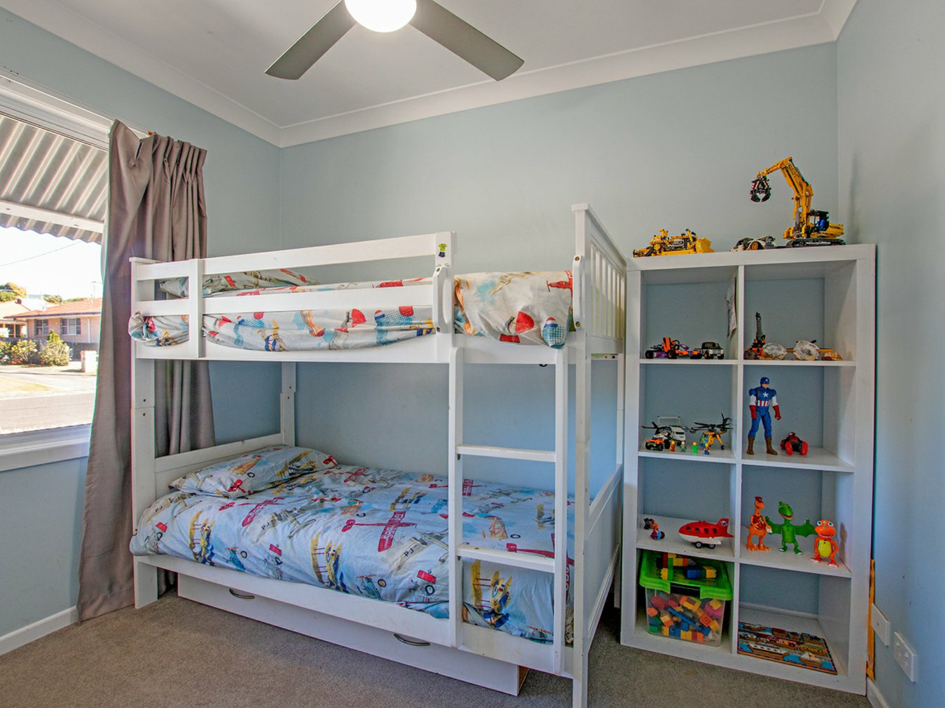 • 3 bedrooms with built-ins & ceiling fans.