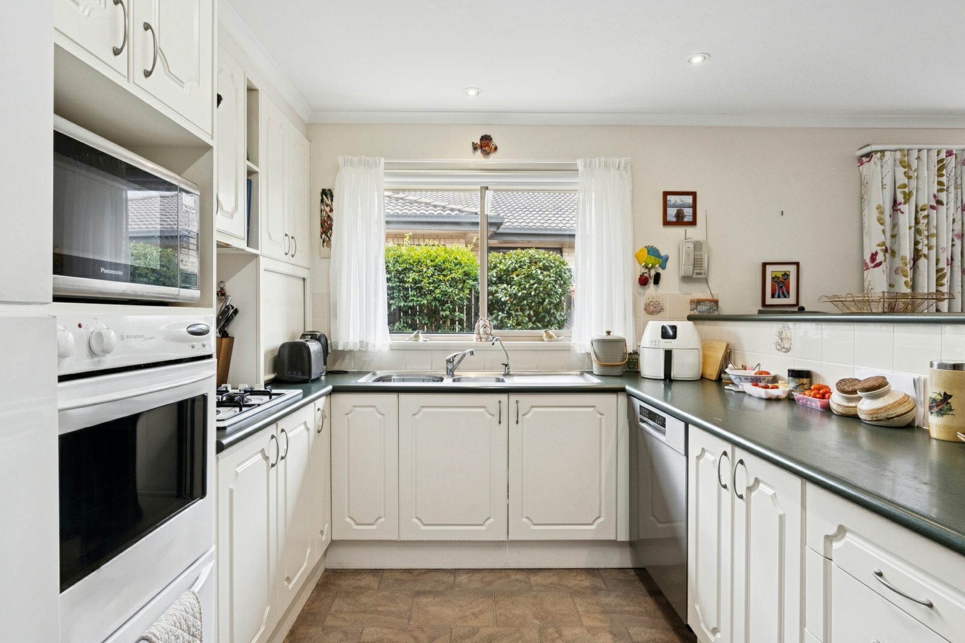 •Modern central kitchen with gas cooking, ample bench space and corner pantry